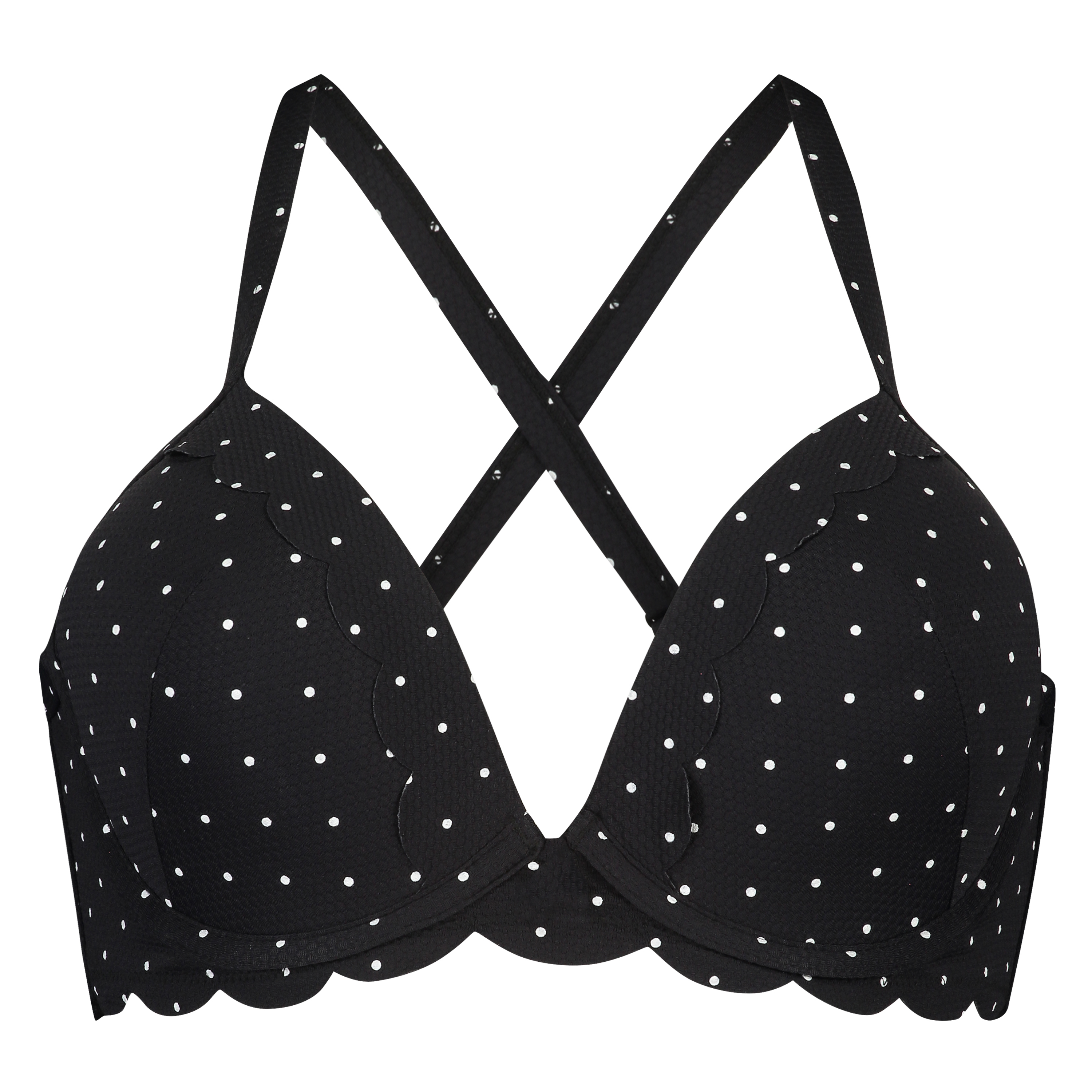 Denne bikinitop er den perfekte basic! Den er forsynet med en muslingekant. Stropperne er på bagsiden krydset for at give mere støtte. Sæt den sammen med matchende items.