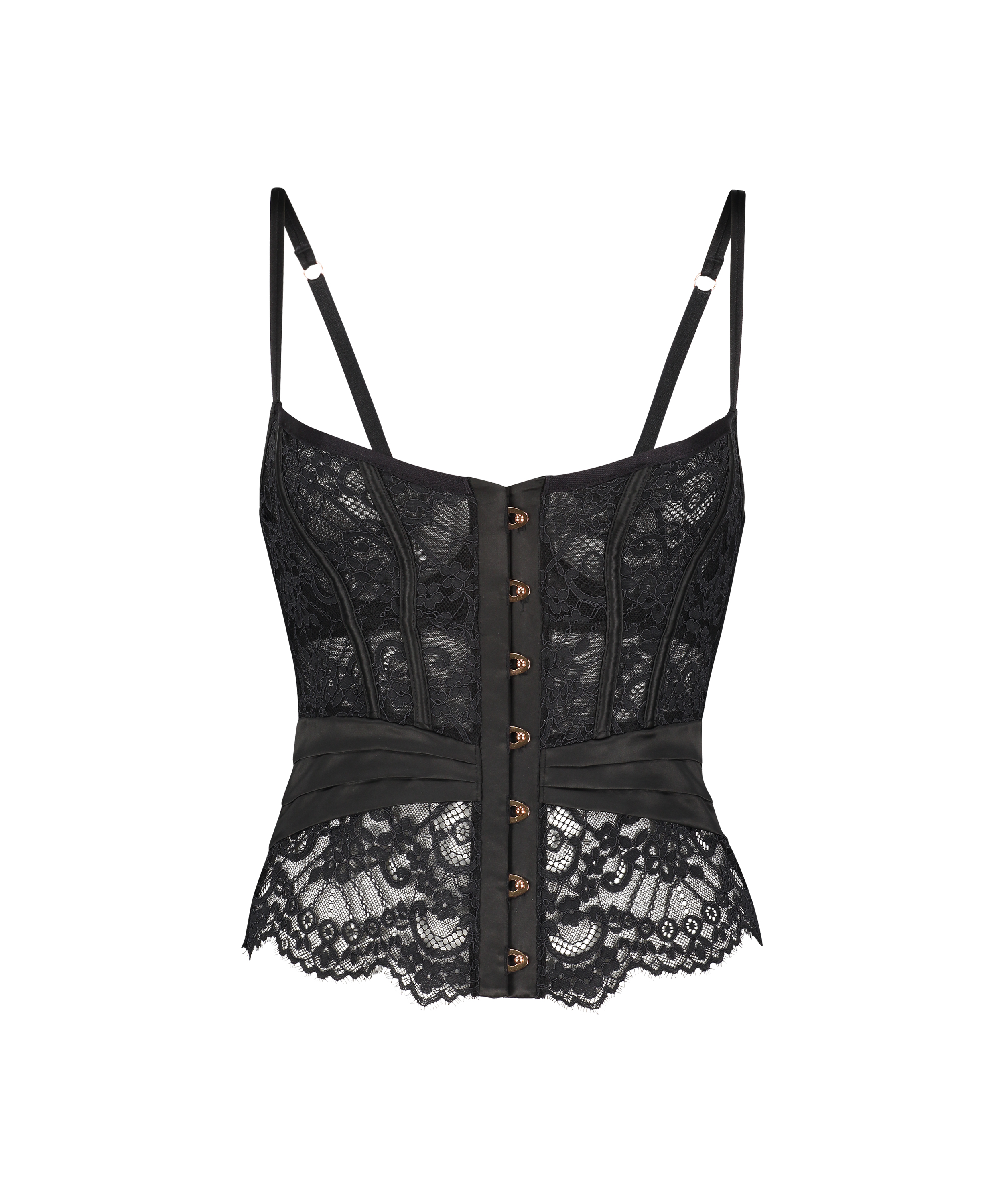 Du vil føle dig super attraktiv i denne bustier! Den er smukt forarbejdet med blonde detaljer og har en vintageudstråling. Bøjlen er anbragt indvendigt og kan ikke ses udefra, hvilket giver et fantastisk look!