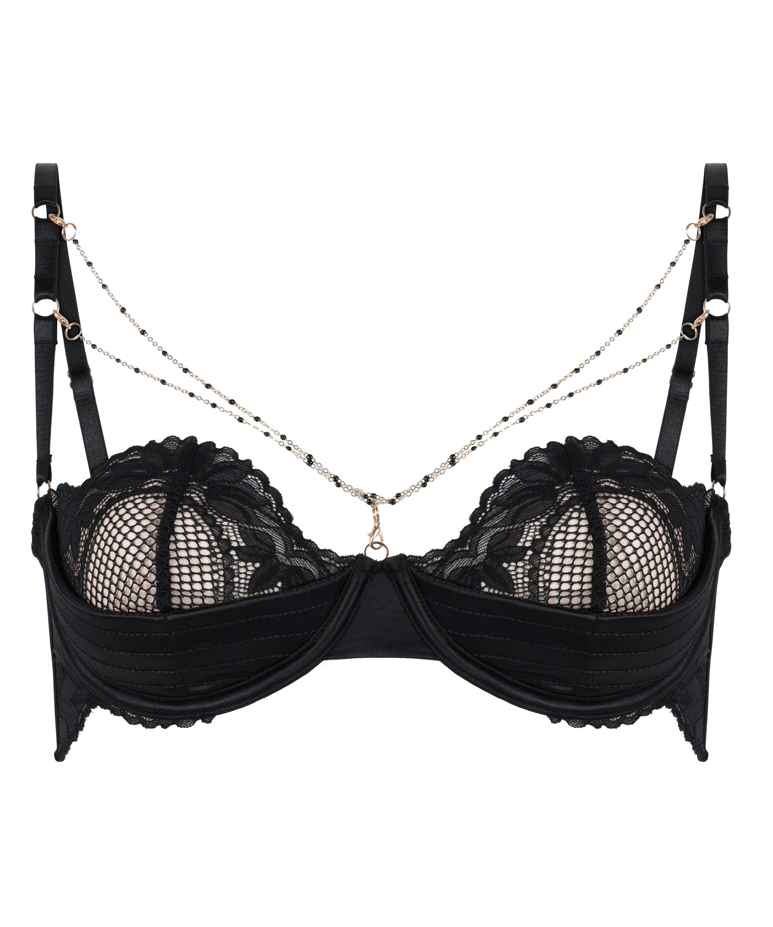 Gå efter et spændende lingerisæt med denne bh! Med snoresropper og halvgennemsigtige blonder. Den har delvist formstøbte skåle med en støttende bøjle. En del af Private Collection!