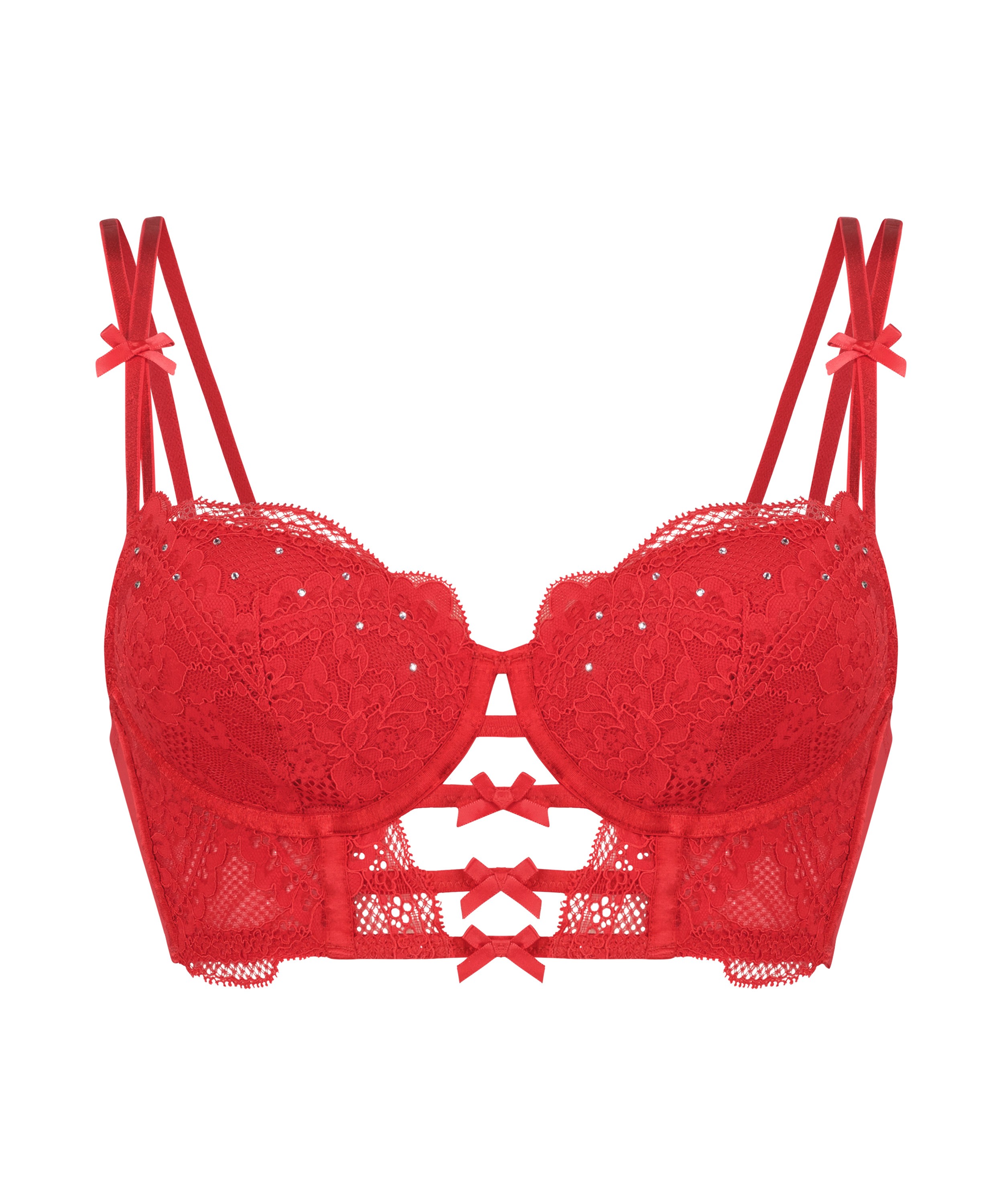 Denne elegante longline bh er formstøbt og forsynet med en bøjle. Bh'en har masser af blonder samt sløjfe- og stropdetaljer, der giver ekstra sjove muligheder for detaljer. Sæt den sammen med matchende trusser for at fuldende sættet!