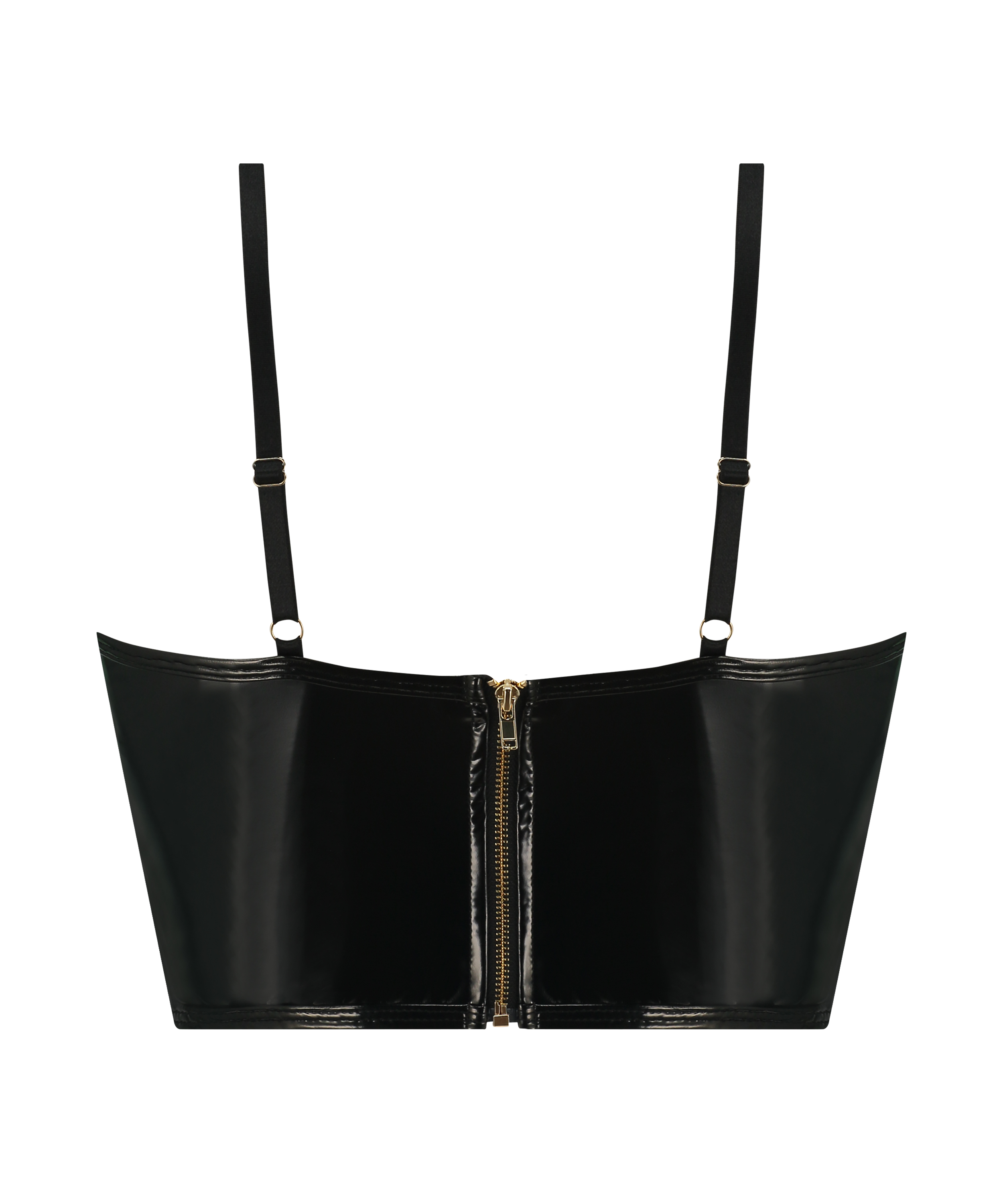 Føl dig forførende i denne sexede top! Den har et imiteret læder-look og frække udskårne detaljer foran. Denne top har lynlåslukning bagpå, og skulderstropperne er justerbare for ekstra komfort. Sæt den samme med matchende dele! En del af vores Private kollektion.