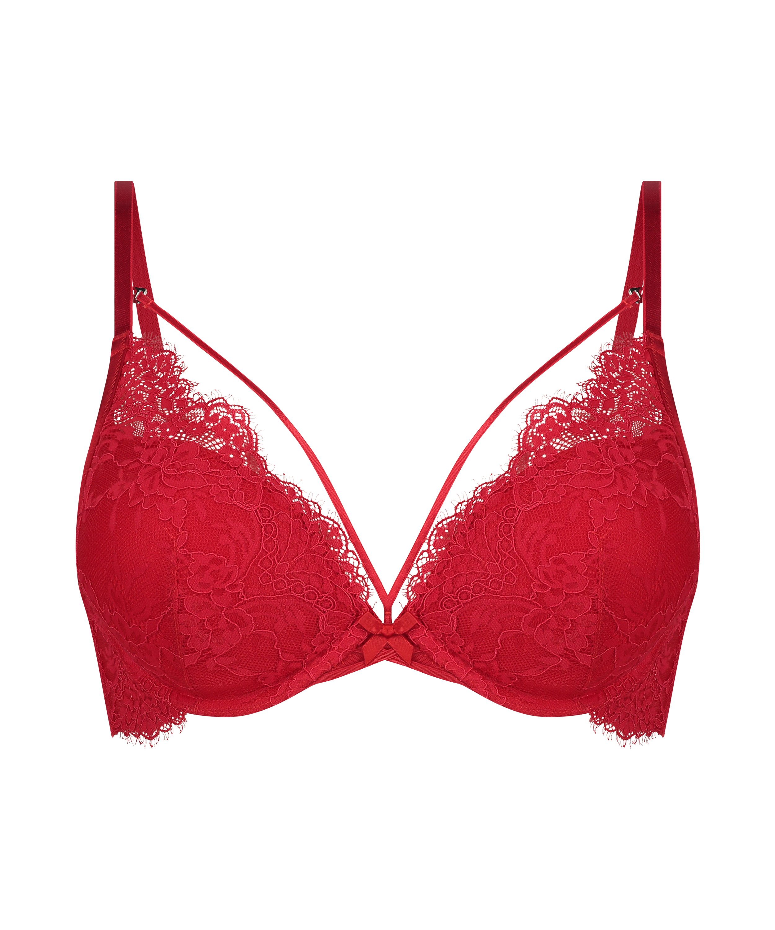 Denne bh bliver din nye bedste ven! Denne bh er en maximiser, der får din skål til at se 2 størrelser større ud. Med masser af blonder og en lille sløjfe foran. Denne bh har bøjle og justerbare skulderstropper for ekstra støtte. Sæt denne bh sammen med de matchende trusser.