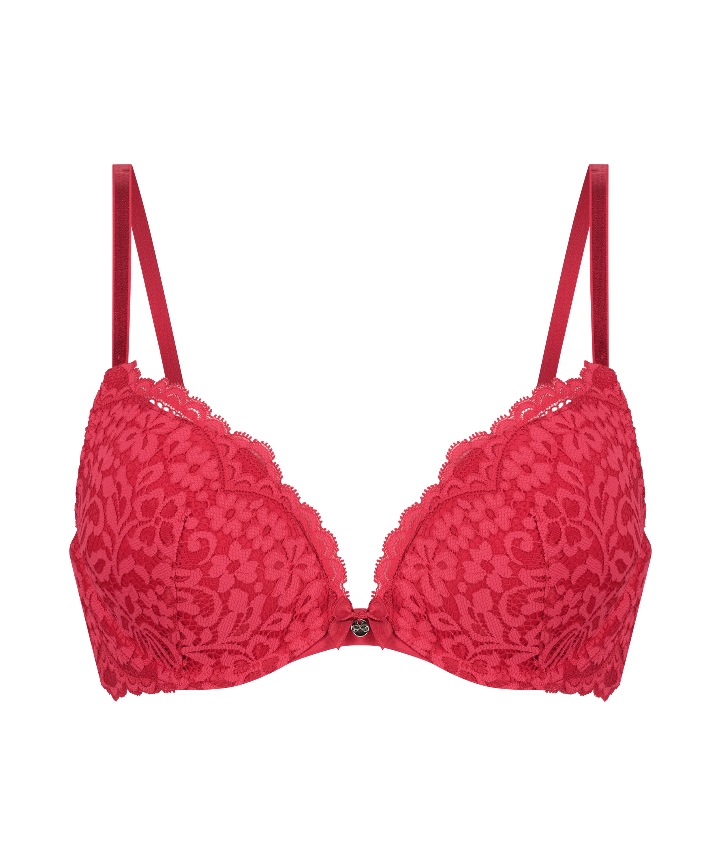 Denne bh er en virkelig must have! Bh'en er helt igennem lavet af blonde og har fine detaljer, såsom en lille sløjfe og det farvede understof, som man kan se gennem blonderne. Kombinér med den matchende trusse for et komplet sæt!