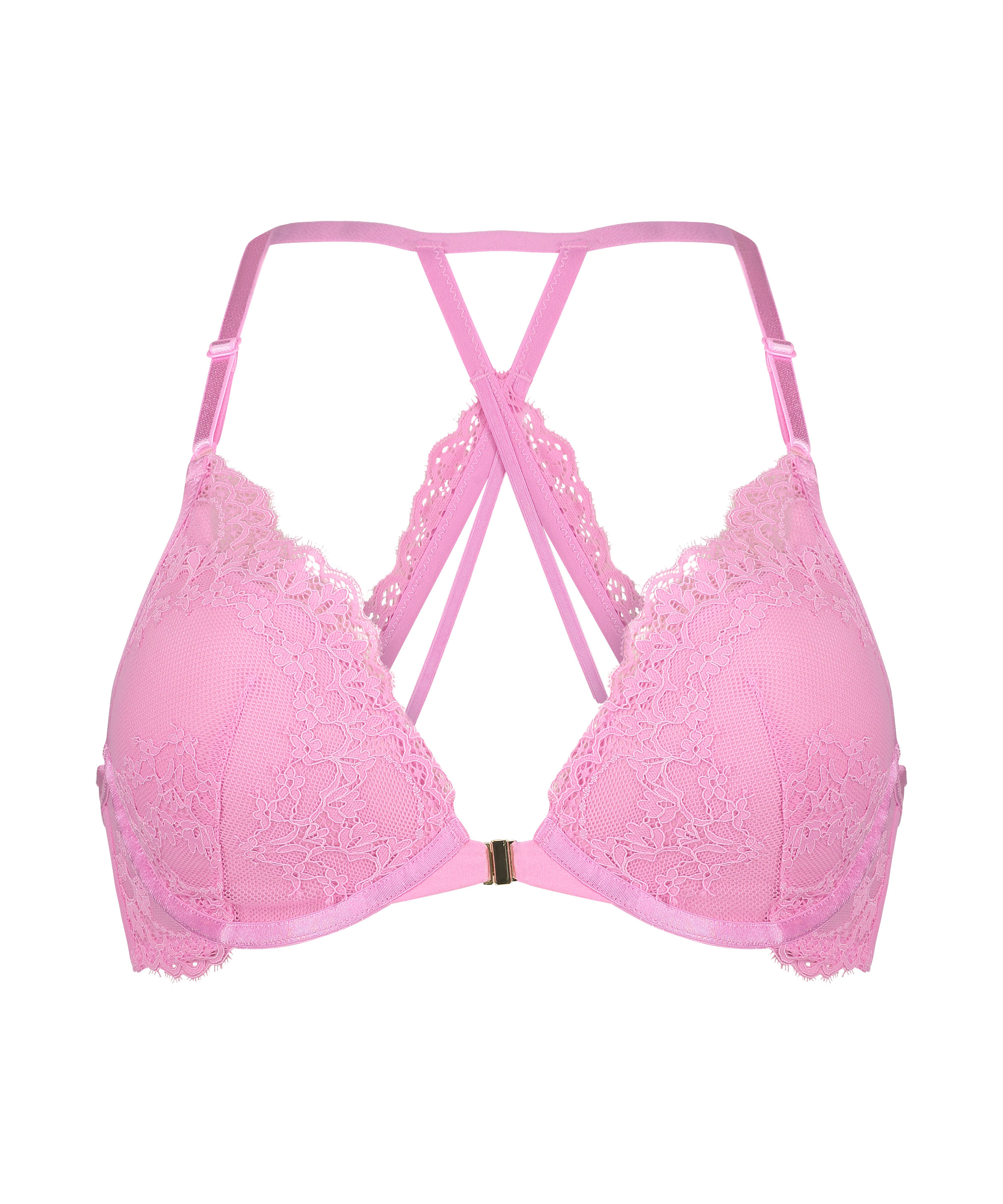 Føl dig fantastisk med denne pushup-bh! Med lukning foran, så den er let at tage på og racerback med masser af blonder. Den er pyntet med blonder på skålene og har sexede snoredetaljer. Find de matchende trusser og fuldend sættet!