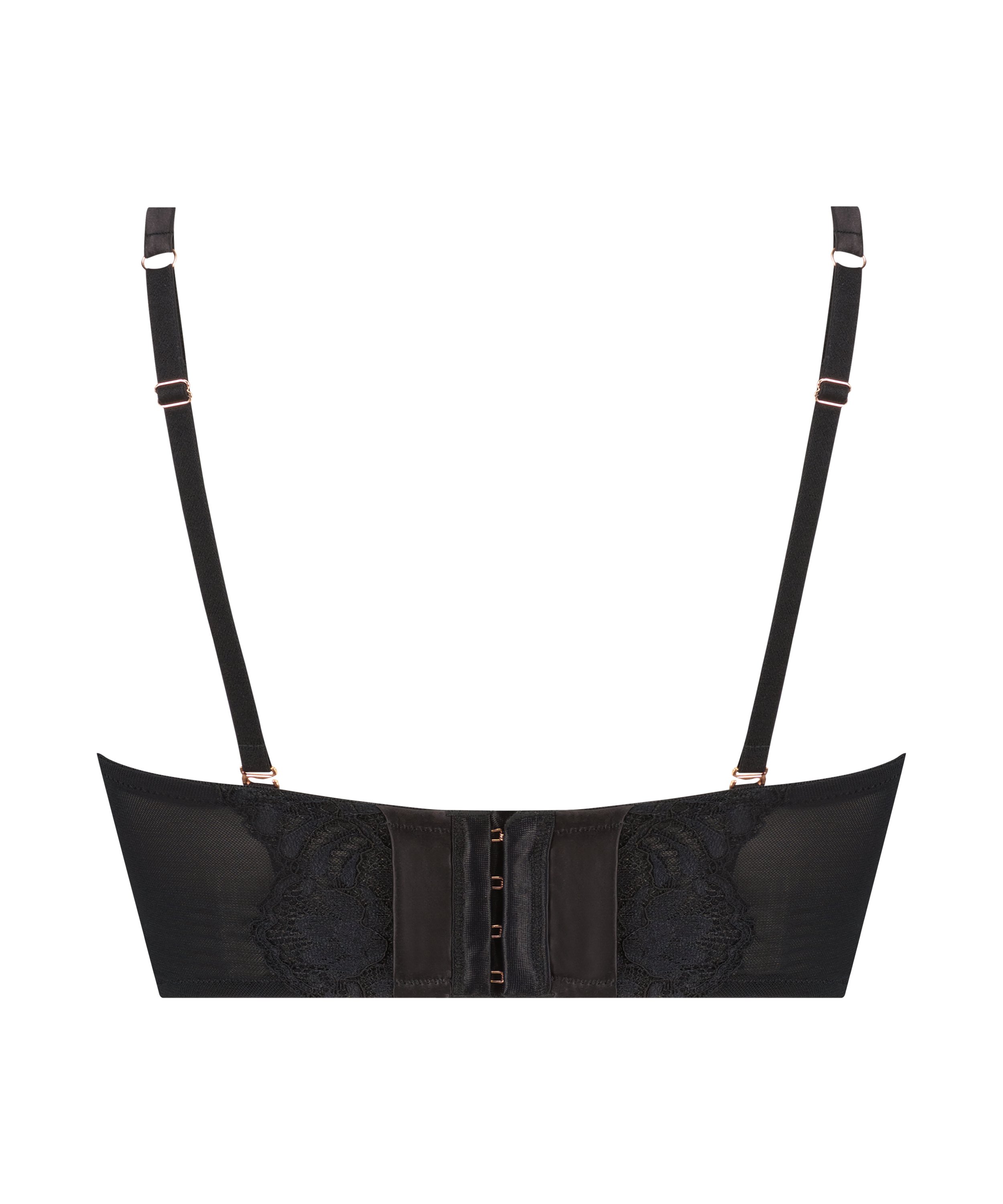 Denne bh har et sexet look og fornemmelse! Den har en bøjle, er forsmtøbt og en longline-form. Kombineret med de aftagelige stropper får du en bh, du ikke kan glemme! Du kan bære denne bh, som du har lyst til, både med og uden stropper, hvilket gør den til din næste alsidige garderobeklassiker. Kombiner den med den matchende underdel for at fuldende sættet. En del af Noir Collection.
