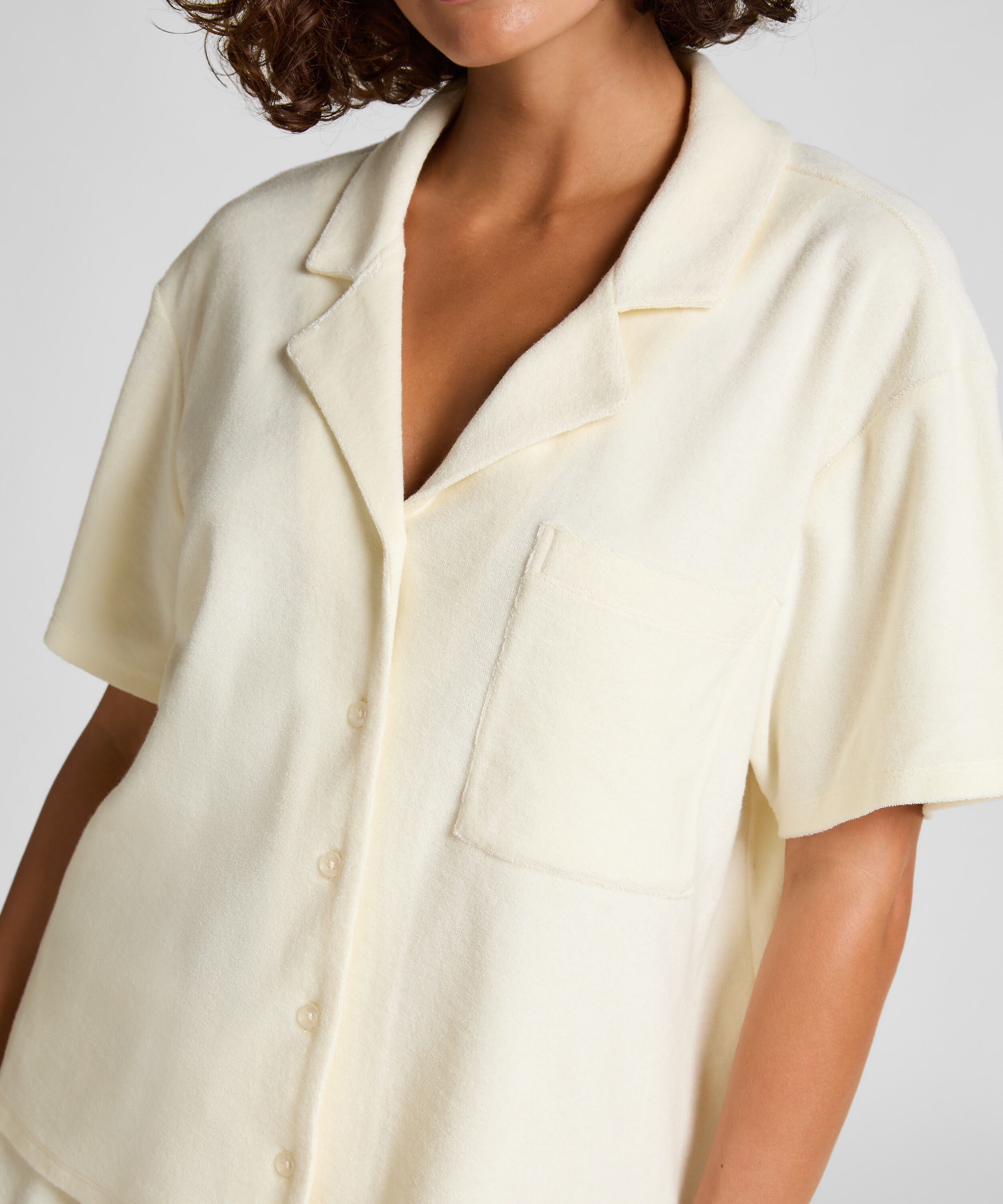Træd ind i afslappet luksus med disse uimodståeligt bløde shorts i håndklædestof. Designet med elastisk talje for komfort hele dagen og en ubesværet flatterende pasform. Kombiner med den matchende top for et hyggeligt look, der er perfekt til både stranden og afslapning.