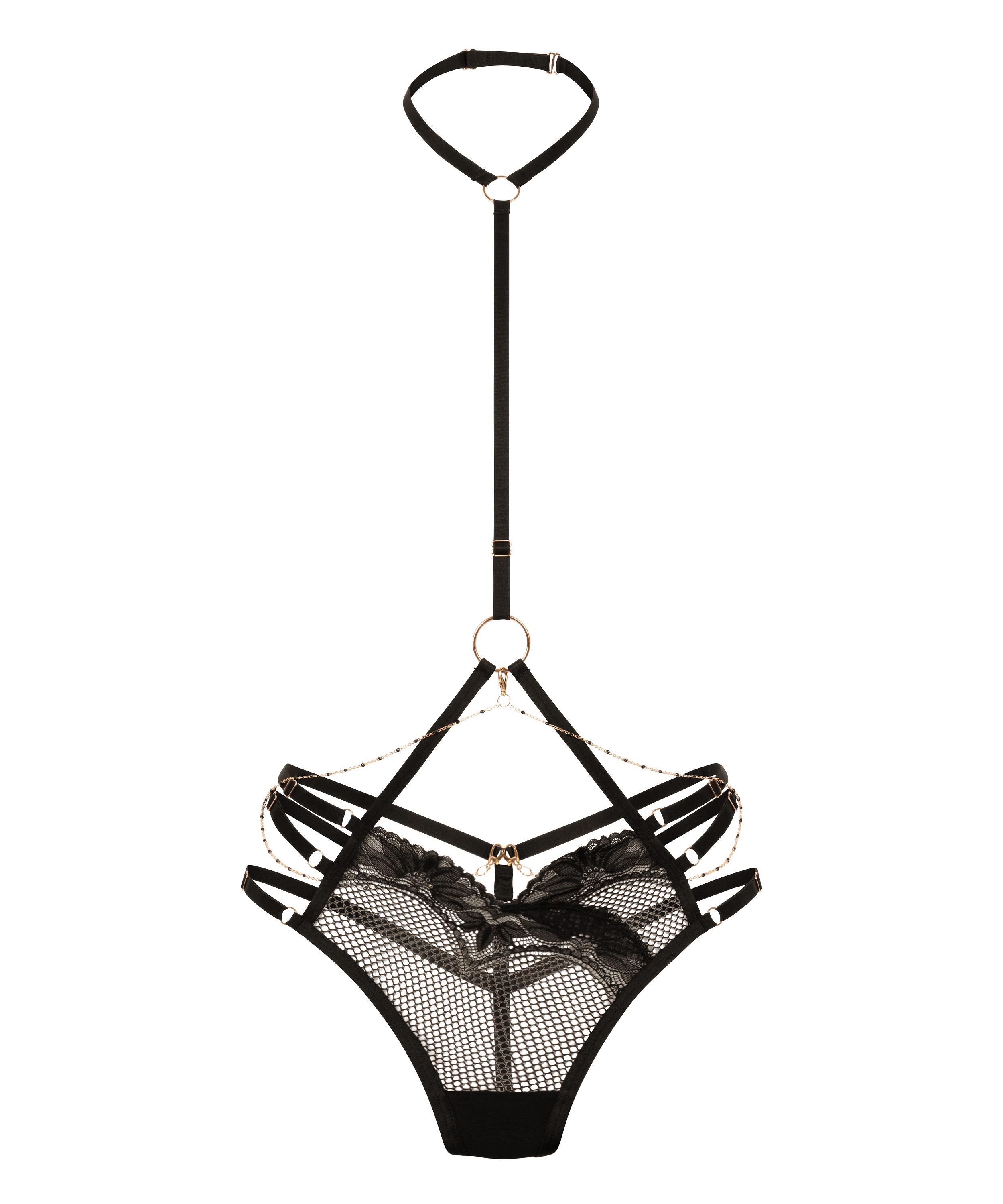 Med smukke blonde- og stropdetaljer samt en choker til at bære om halsen. Den aftagelige halskæde gør dette stykke til et ægte must-have!