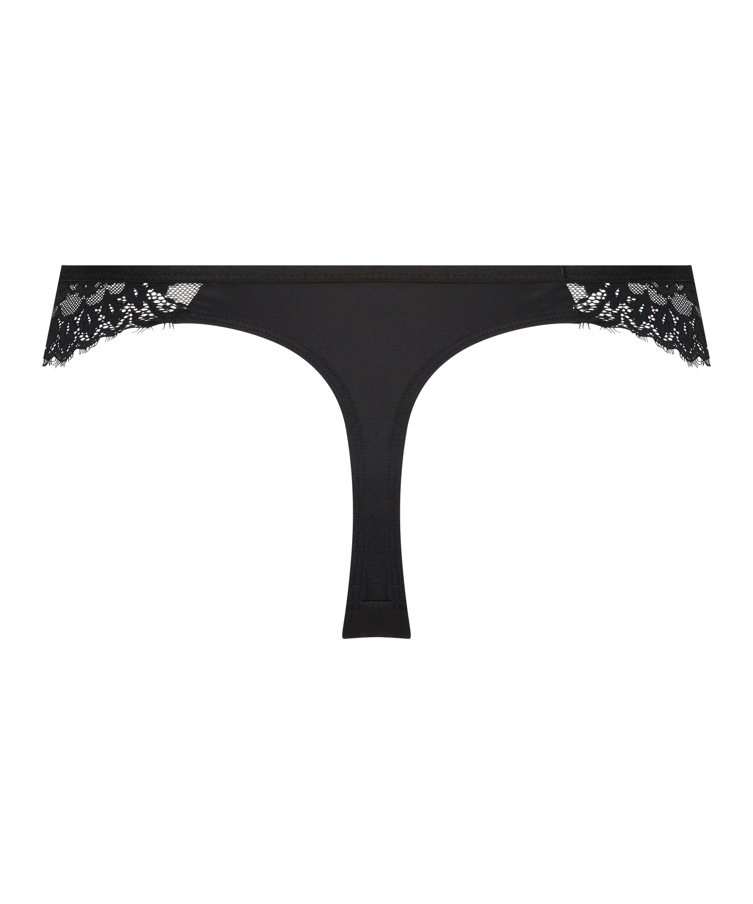 Trendy g-streng med transparant blondestof foran og mesh-stof bagpå. En lille knap i midten af fronten sætter prikken over i'et.