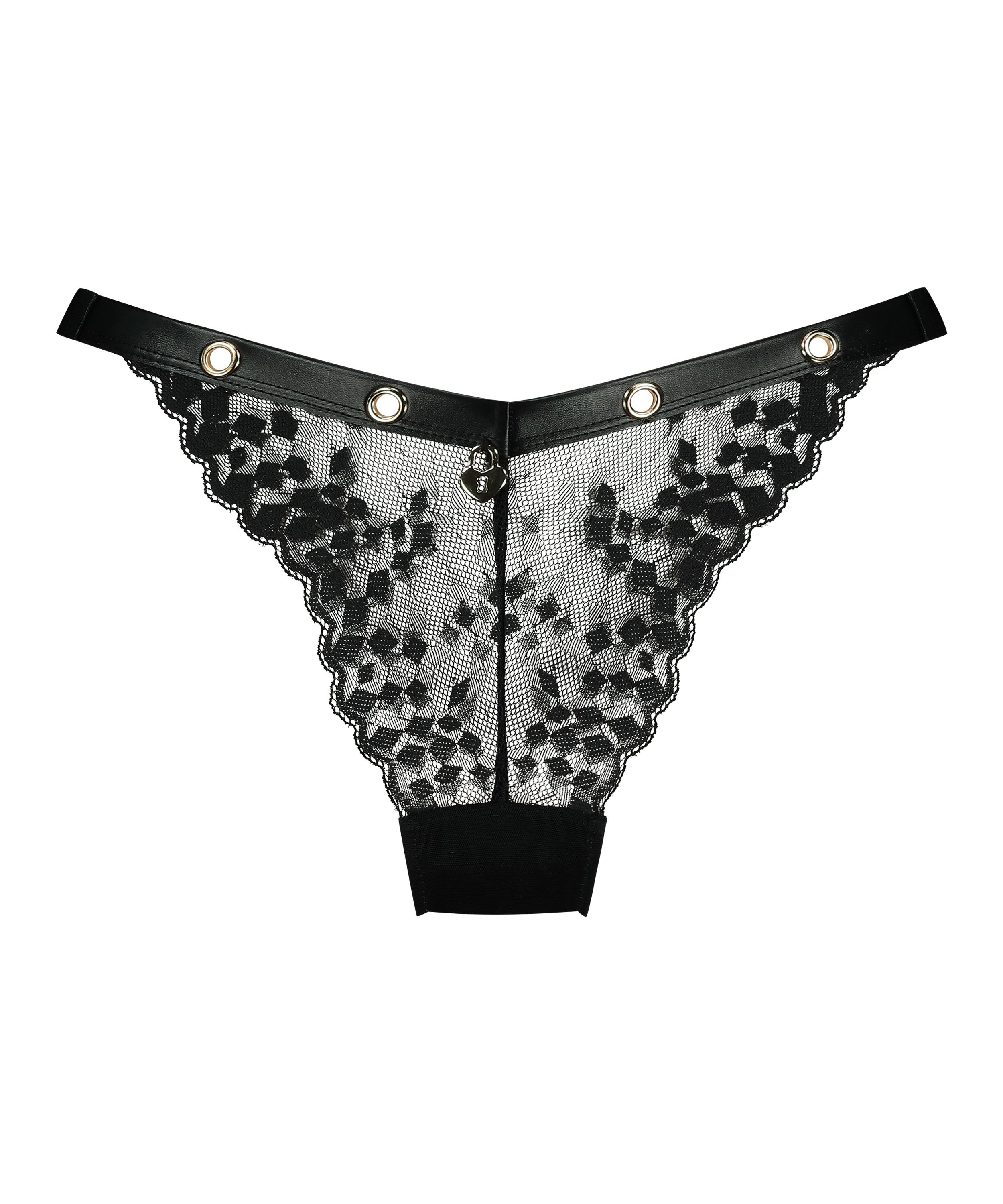 Lok og forfør med vores udsøgte g-streng fra Private kollektionen! Udformet med luksuriøst blondestof og prydet med gyldne detaljer foran, udstråler denne g-streng overdådighed og raffinement. Den fantastiske udskæring i ryggen tilføjer et strejf af raffinement, mens tilføjelsen af en lås øger dens eksklusivitet. Fuldend sættet ved at parre det med de matchende bh'er, så du får et look, der både er forførende og uforglemmeligt.