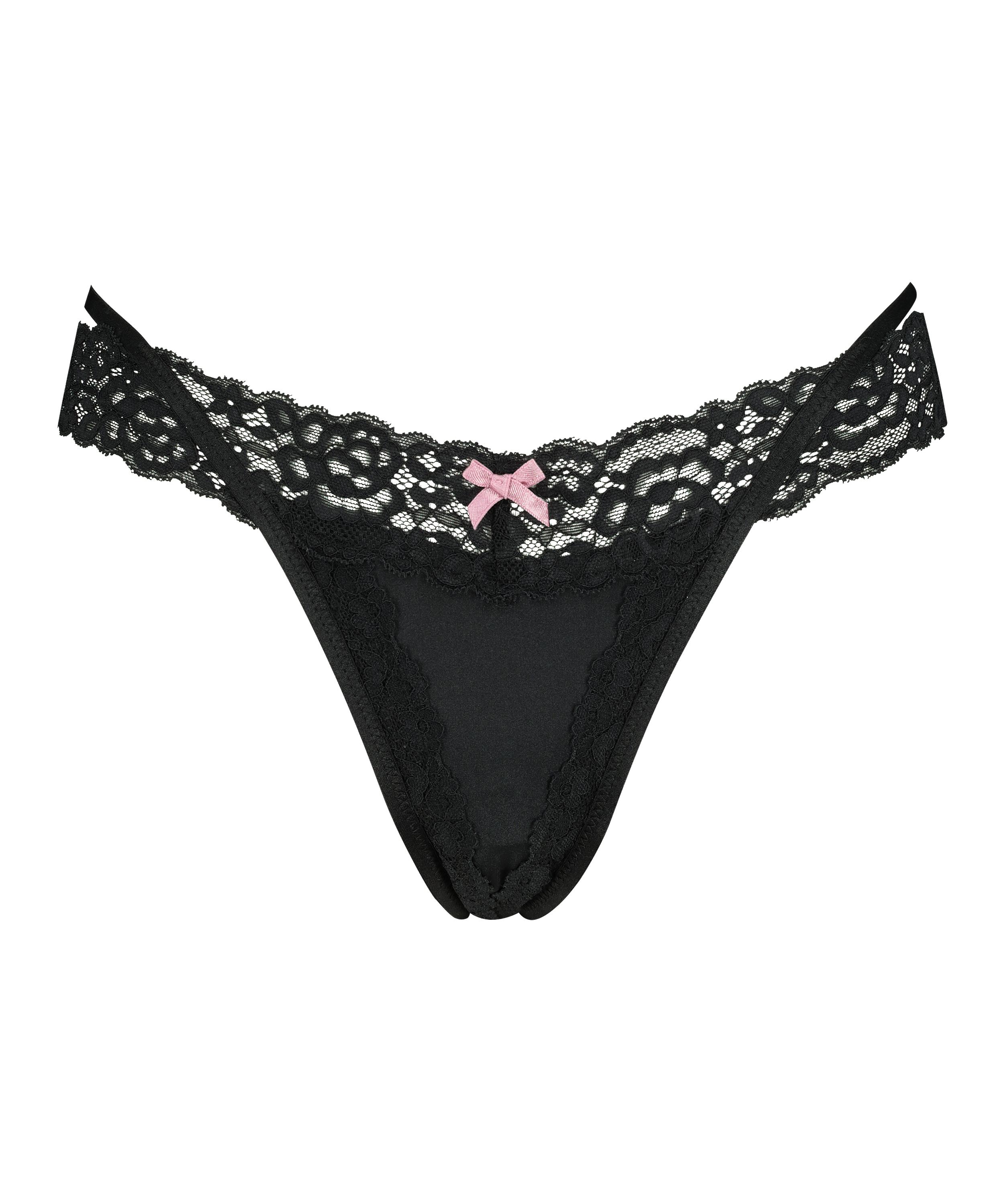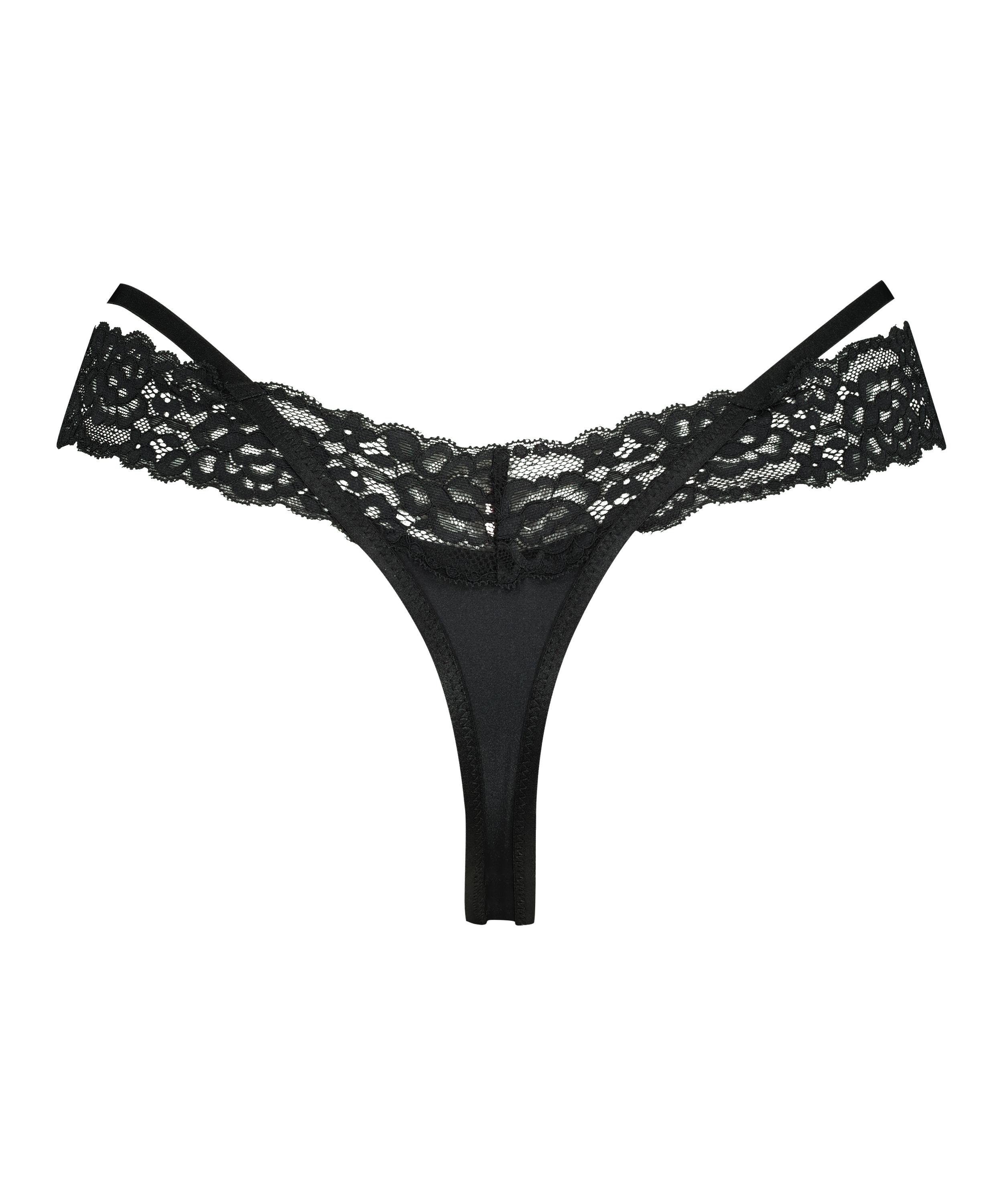 Denne ekstra lave v-streng har en ekstra flot detalje! Trussen har stropperede detaljer og en masse blonder. Match med en passende bralette eller bh, så du har et komplet sæt.