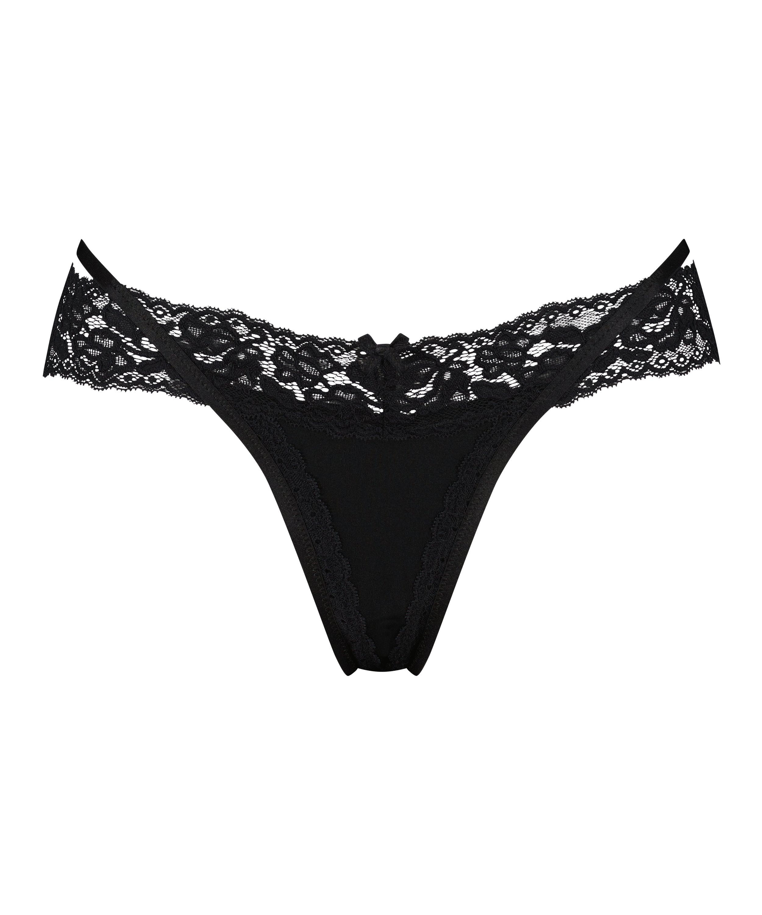 Denne ekstra lave v-streng har en ekstra flot detalje! Trussen har stropperede detaljer og en masse blonder. Match med en passende bralette eller bh, så du har et komplet sæt.