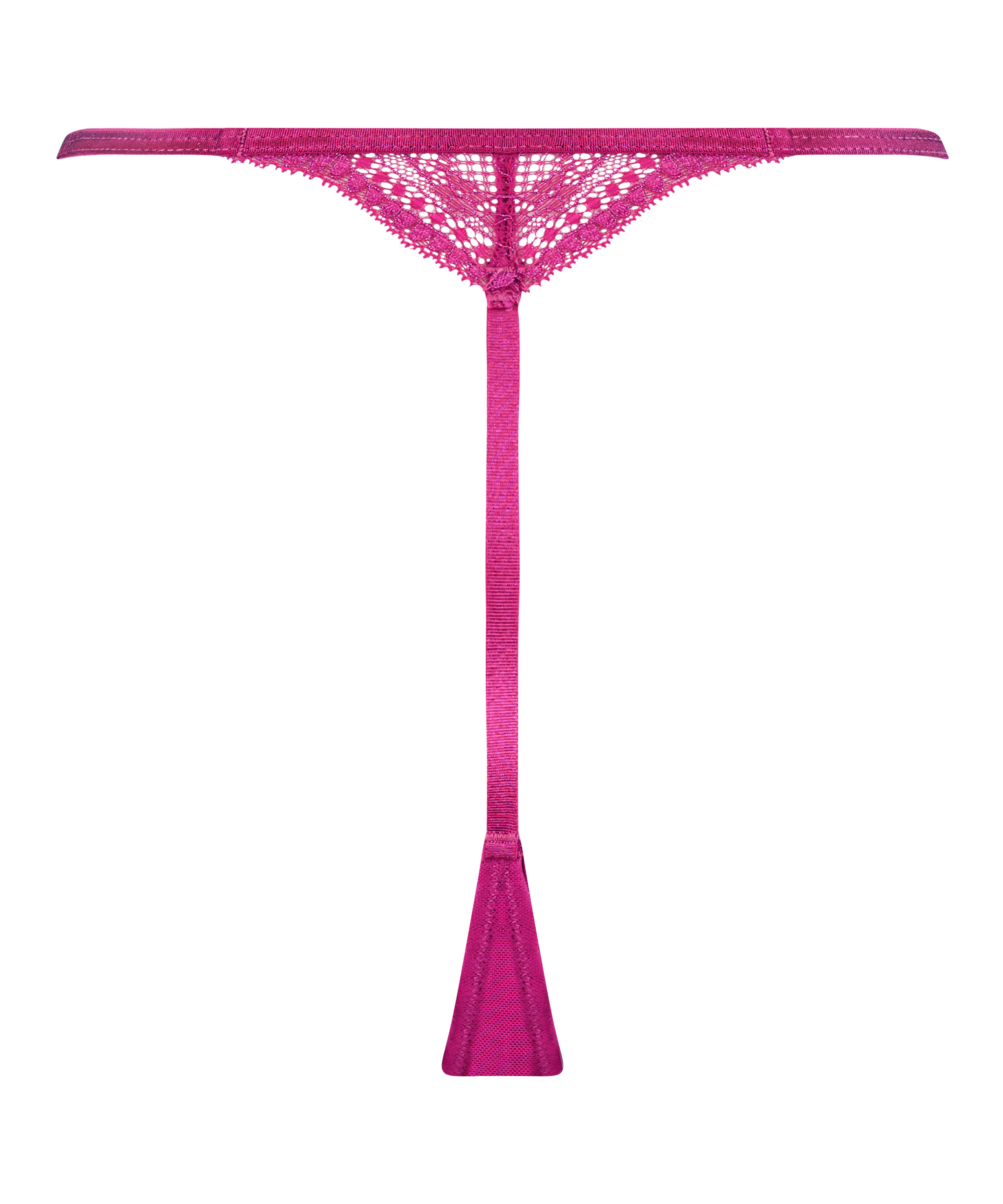 Føl dig selvsikker i denne g-streng! Den har en høj benudskæring og er helt dækket af blonder, der giver den et halvgennemsigtigt og sexet look. Sæt denne g-streng sammen med den matchende bh for at fuldende dit lingerisæt.
