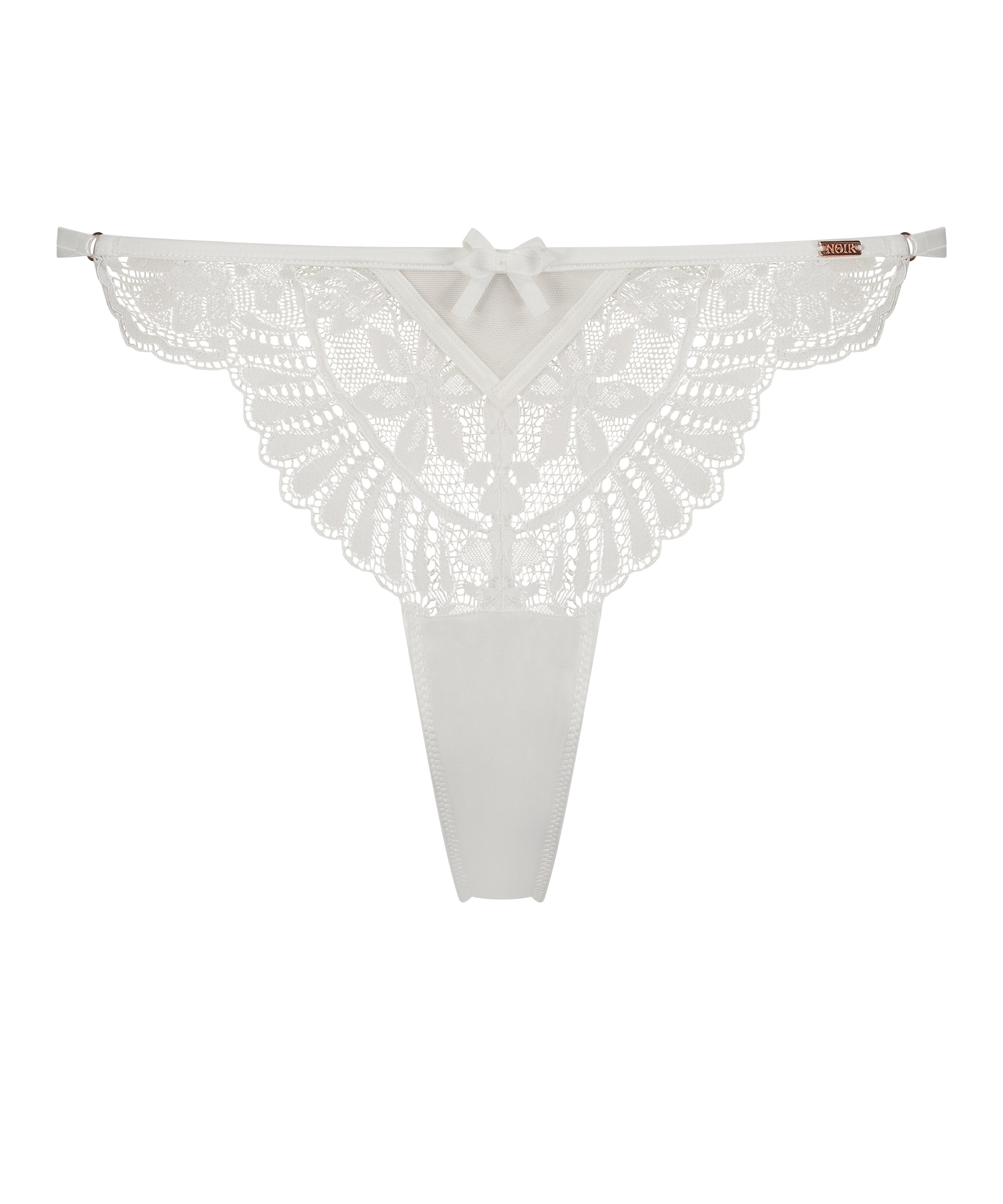 Den perfekte G-streng, der giver et dristigt og smukt statement. De åbne blonder tilføjer et strejf af vovet raffinement, mens stropdetaljer og den søde sløjfe foran tilføjer et legende strejf. Denne G-streng er en del af et lingerisæt med mange dele, du kan kombinerer efter lyst, så du kan skabe et nyt look hver gang. En del af Noir Collection.