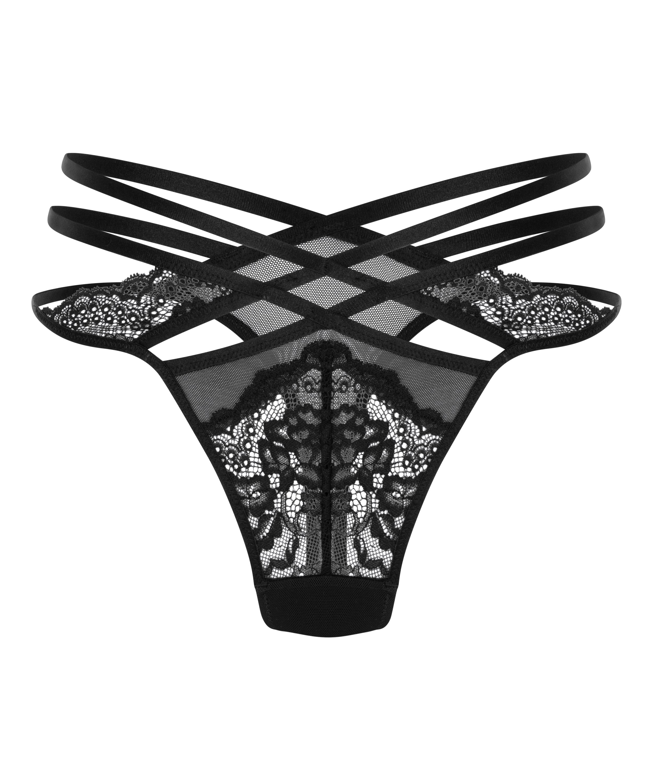 Løft dit lingerieventyr op i en højere klasse med denne smukke g-streng! Med blondedetaljer foran og et sexet stropdesign hele vejen rundt. Kombiner denne g-streng med en af vores nuværende favoritter!