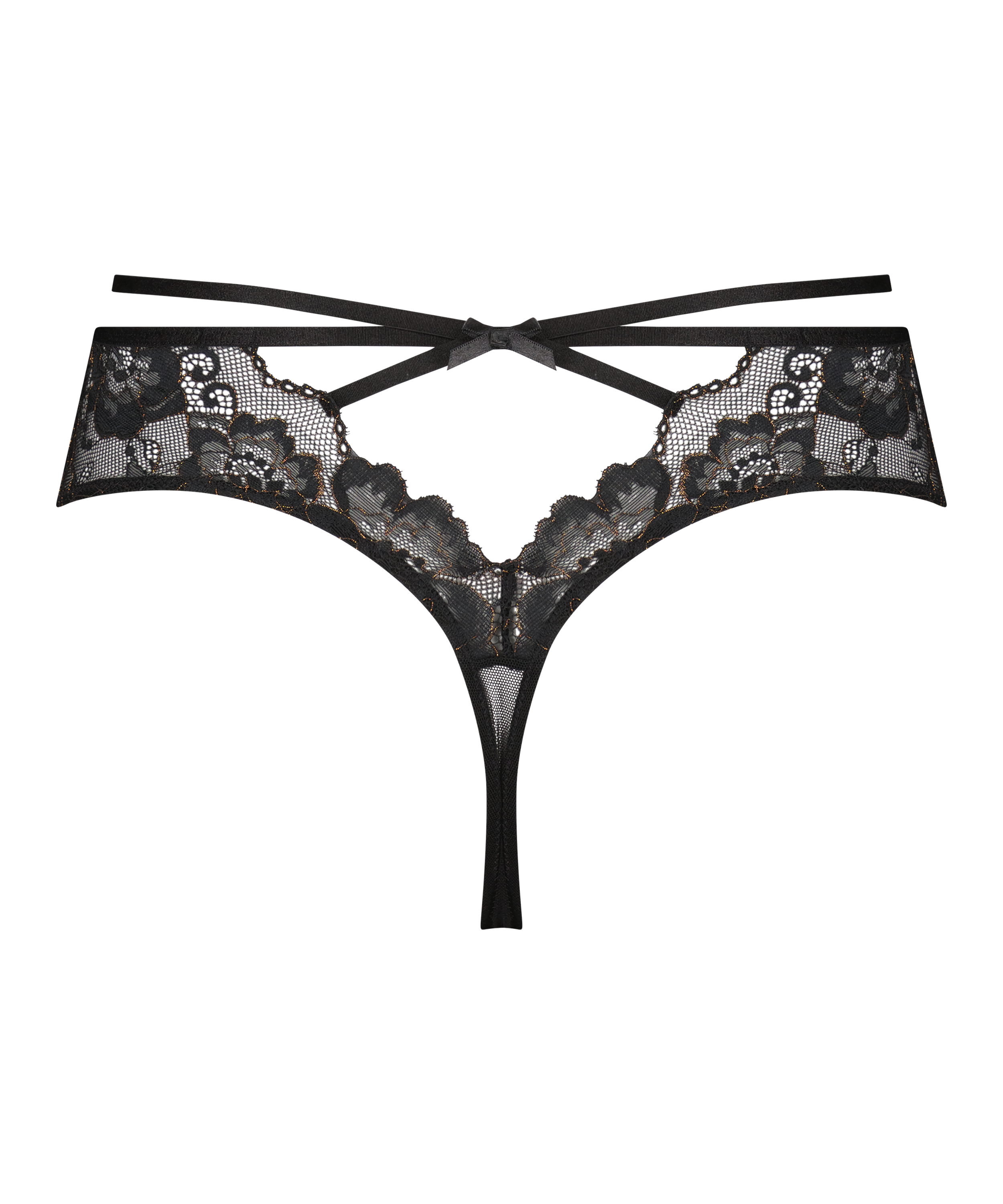Føl dig supersexet i denne g-streng! Den er hovedsagelig lavet af blonder, der er en flot sløjfe bagpå, og stropperingerne er prikken over i’et. Kombiner med dit eget yndlingstilbehør.