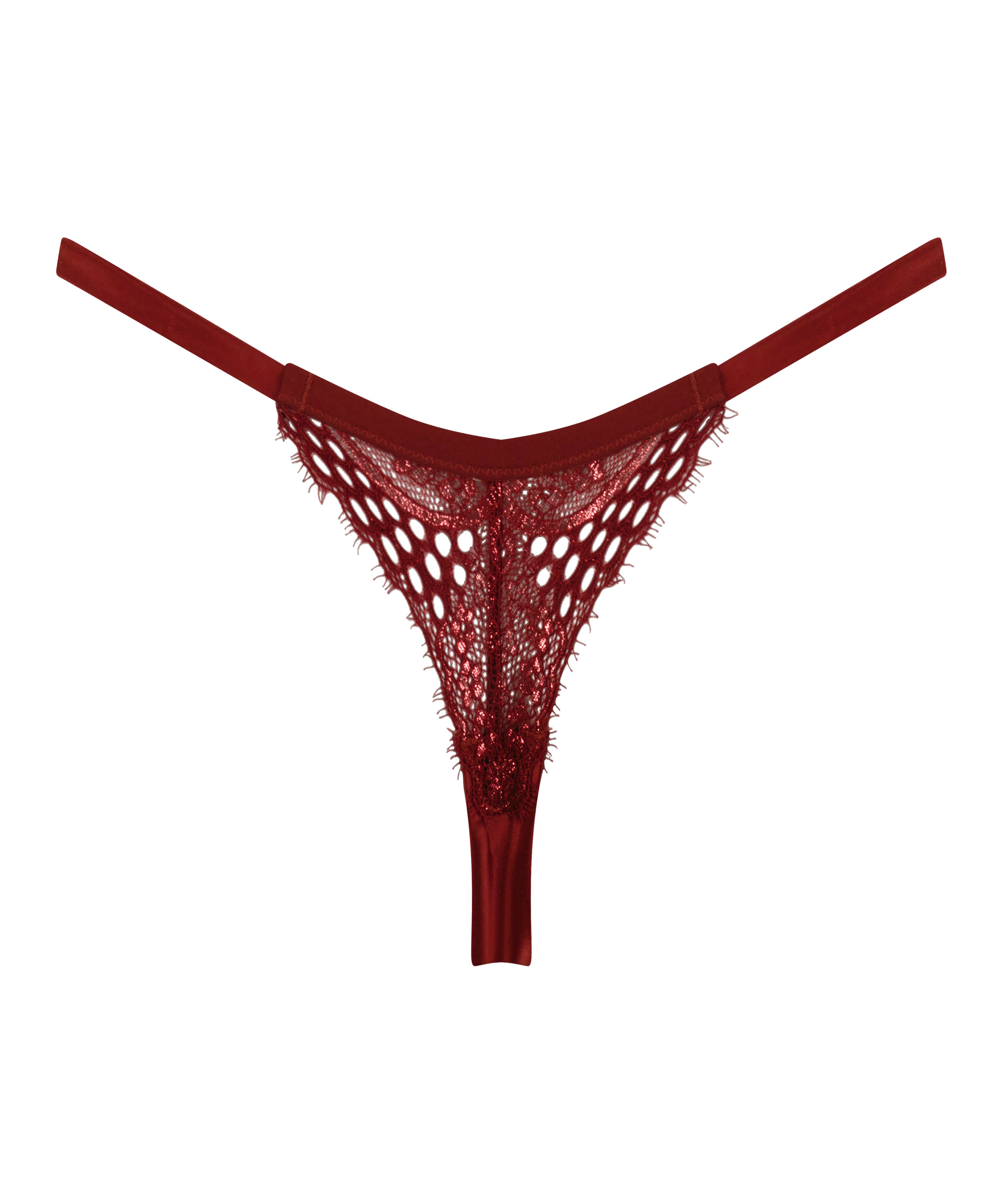 Fuldend dit Lara-sæt helt med denne smukke g-streng! G-strengen har blonder foran med en glinsende lurex og satindetaljer. Del af Noir-kollektionen.
