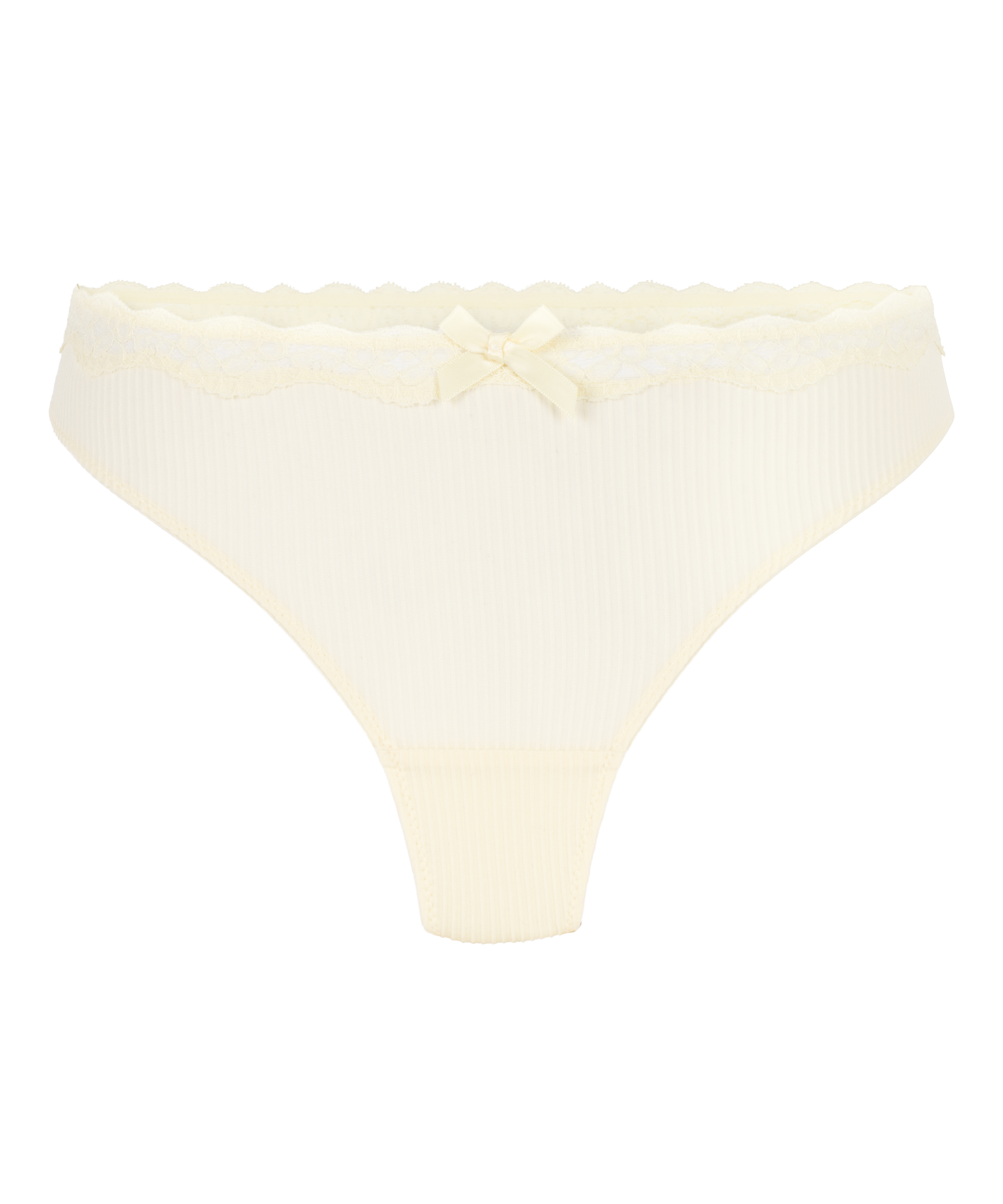 Denne g-streng er lavet af ribstof og er forsynet med en blondekant foroven. Sløjfen i midten runder g-strengen fint af! Kombinér med den matchende bh for et komplet sæt!