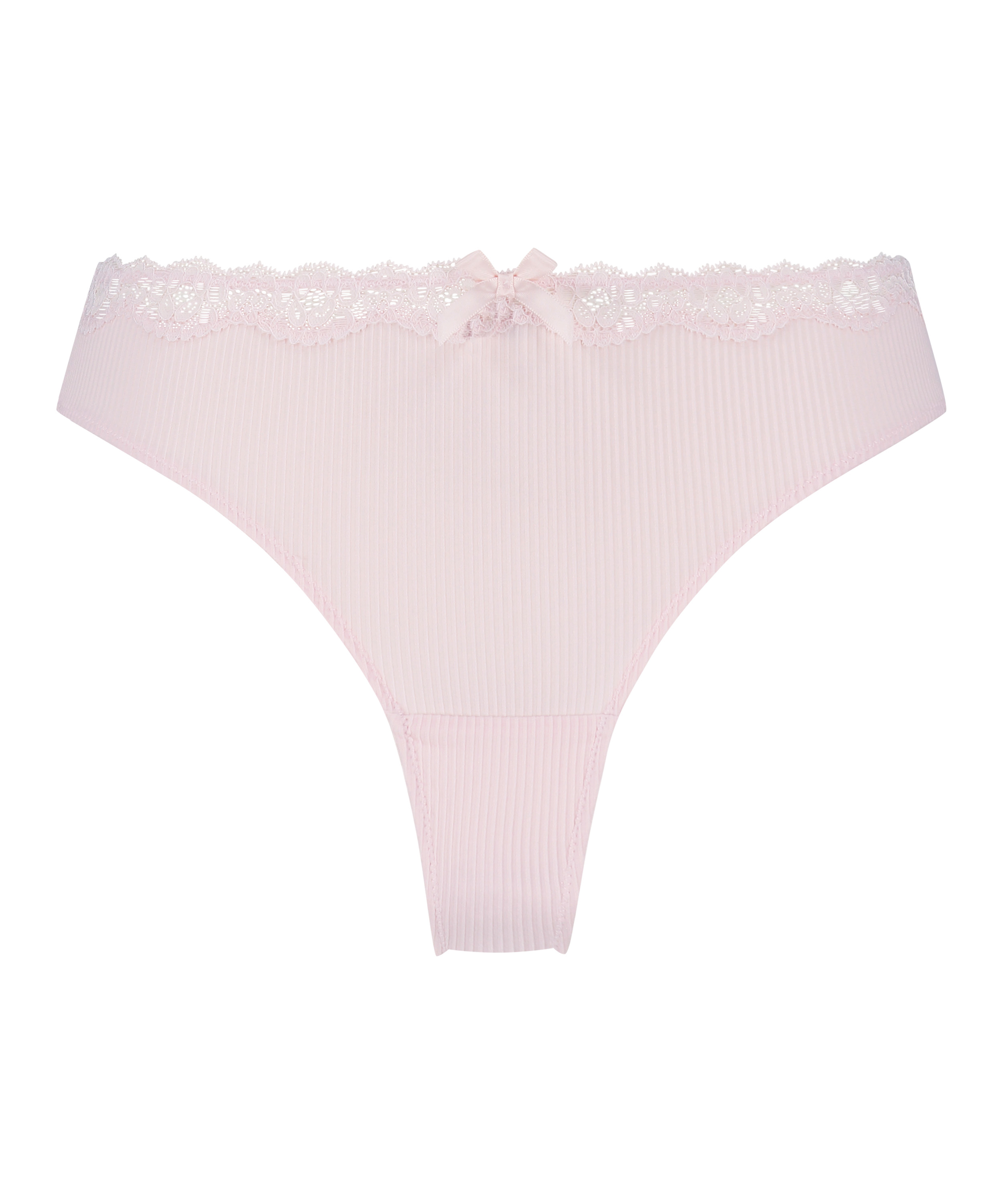 Denne g-streng er lavet af ribstof og er forsynet med en blondekant foroven. Sløjfen i midten runder g-strengen fint af! Kombinér med den matchende bh for et komplet sæt!