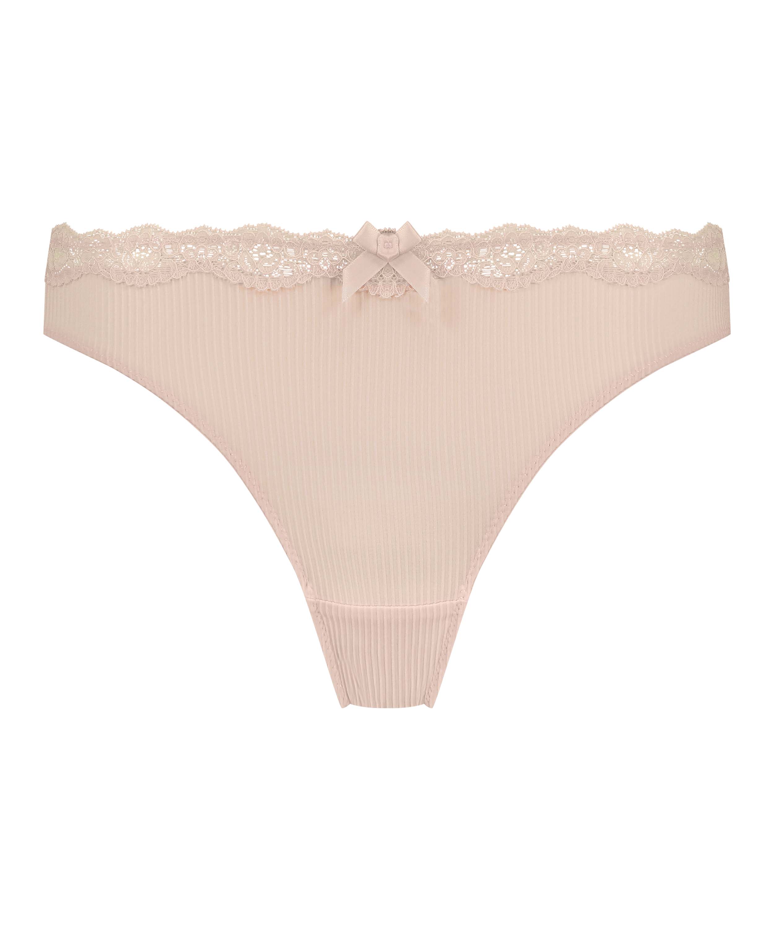 Denne g-streng er lavet af ribstof og er forsynet med en blondekant foroven. Sløjfen i midten runder g-strengen fint af! Kombinér med den matchende bh for et komplet sæt!