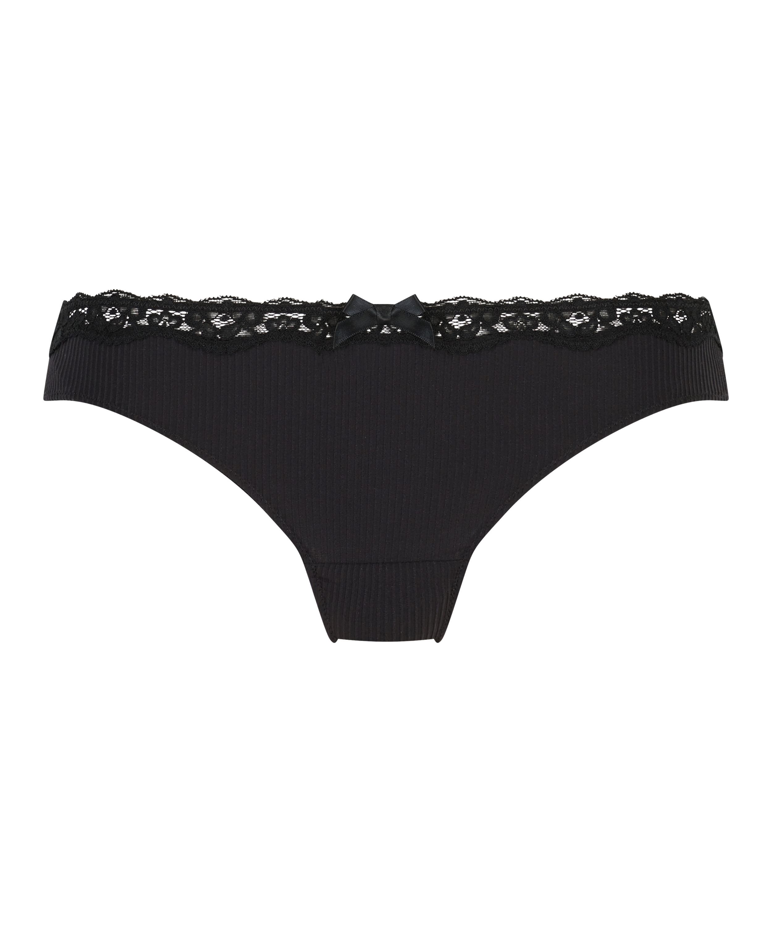 Denne g-streng er lavet af ribstof og er forsynet med en blondekant foroven. Sløjfen i midten runder g-strengen fint af! Kombinér med den matchende bh for et komplet sæt!