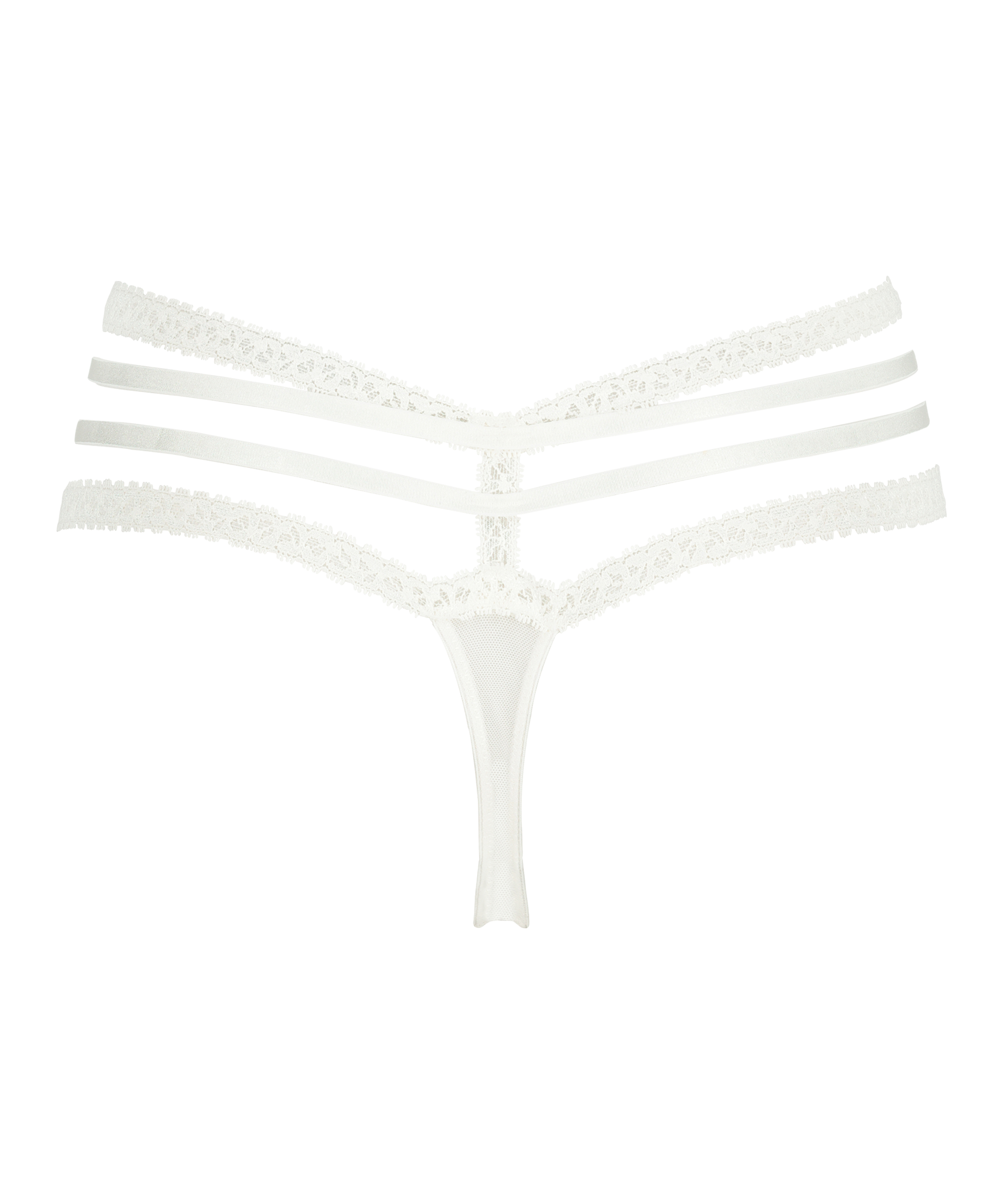 Føl dig supersexet i denne g-streng! Den er hovedsagelig lavet af blonder, der er en flot sløjfe foran, og stropperingerne er prikken over i’et. Kombiner med dit eget yndlingstilbehør.