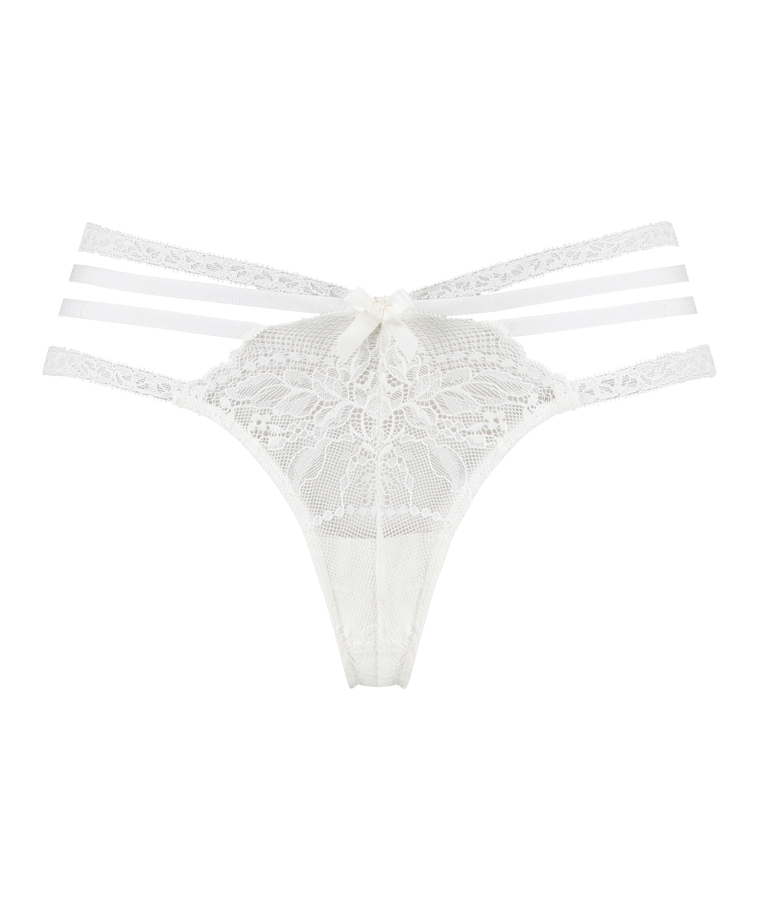 Føl dig supersexet i denne g-streng! Den er hovedsagelig lavet af blonder, der er en flot sløjfe foran, og stropperingerne er prikken over i’et. Kombiner med dit eget yndlingstilbehør.