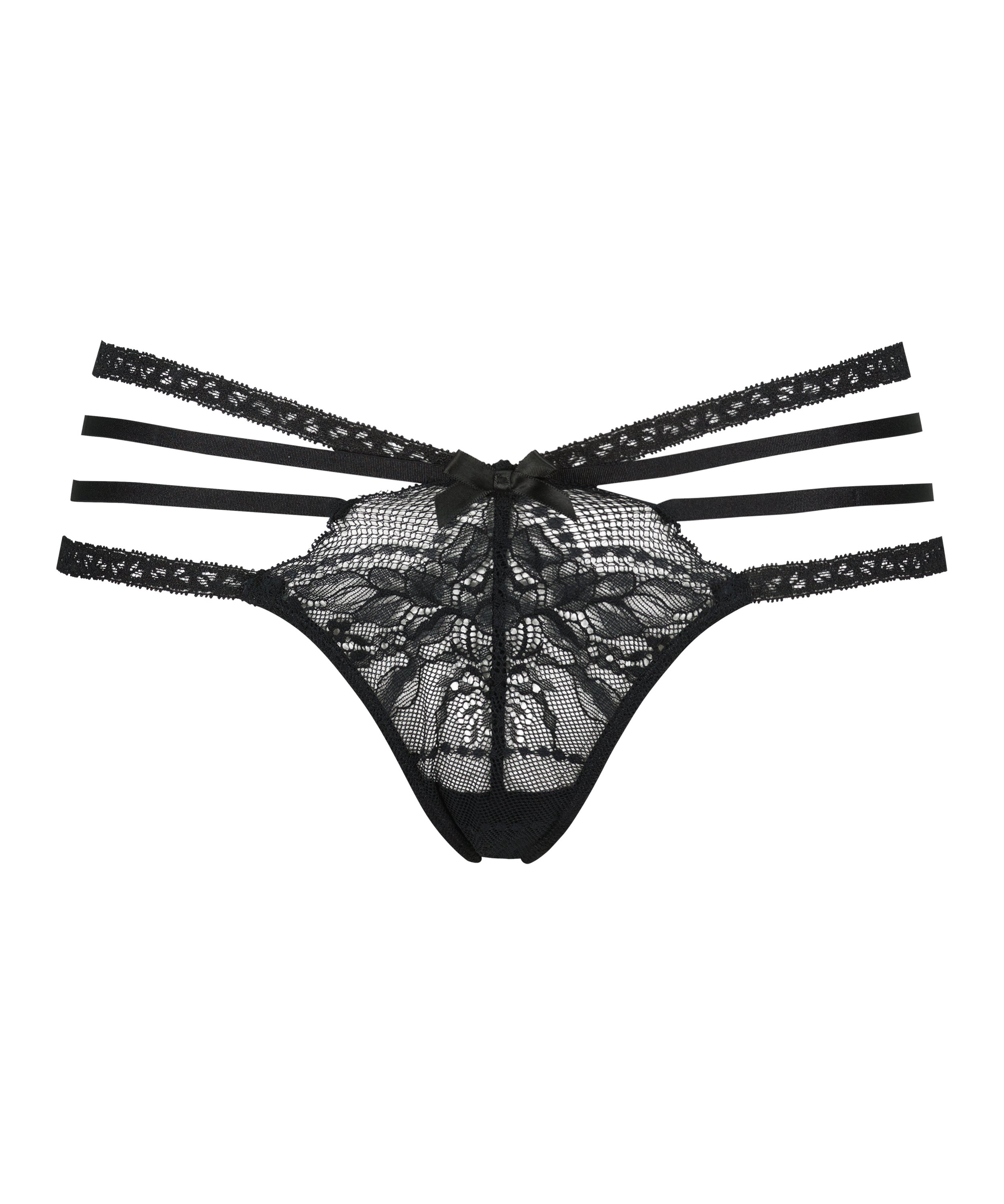 Føl dig supersexet i denne g-streng! Den er hovedsagelig lavet af blonder, der er en flot sløjfe foran, og stropperingerne er prikken over i’et. Kombiner med dit eget yndlingstilbehør.