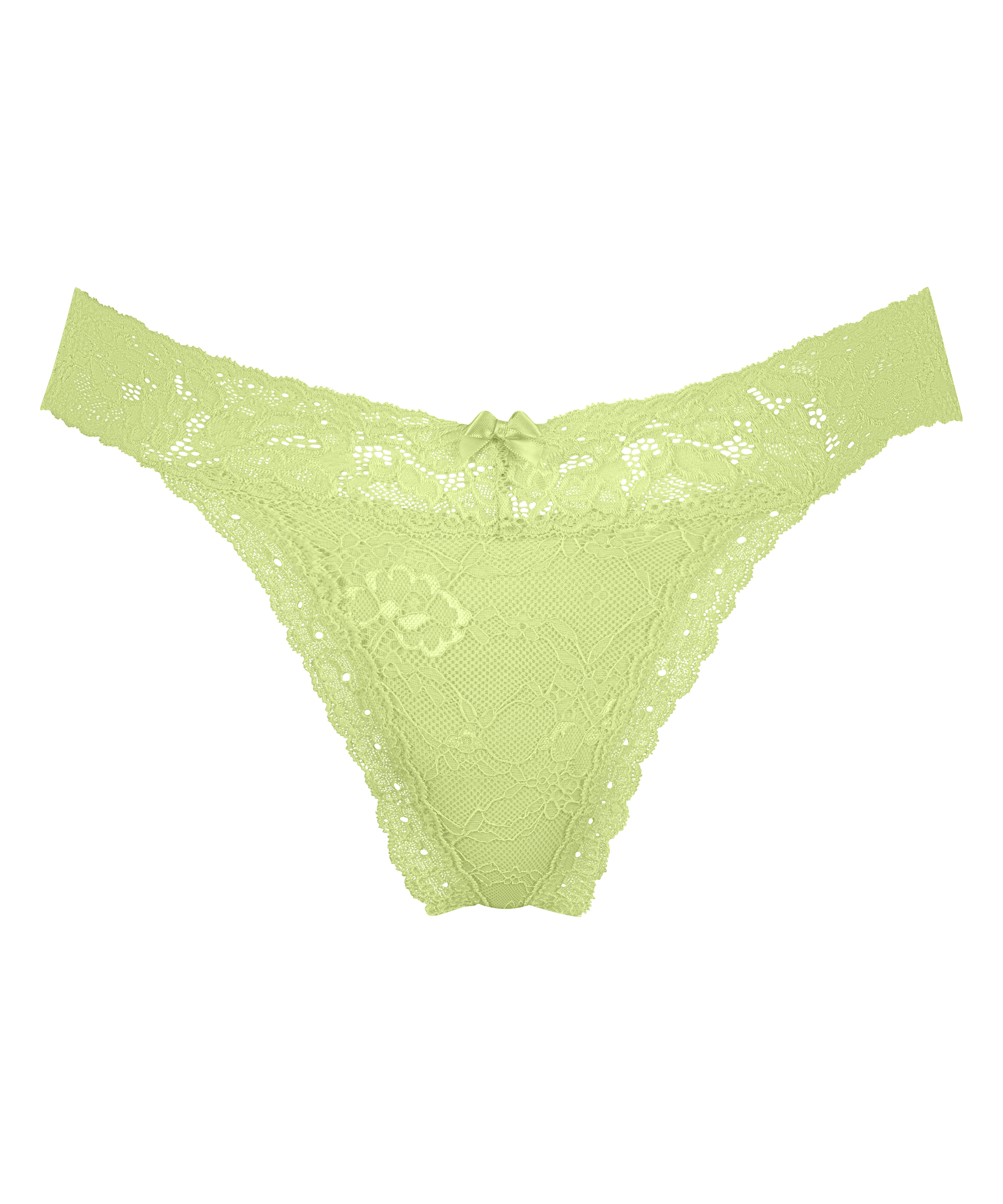 Vi elsker blonder! Det V-formede snit på denne g-streng er ekstra lavt. Mix og match! Det superkomfortable must, føles ny og bedre på hånden og er ekstremt blød og strækbar. Med smukke blomsterblonder, der gør stilen ekstra moderne.