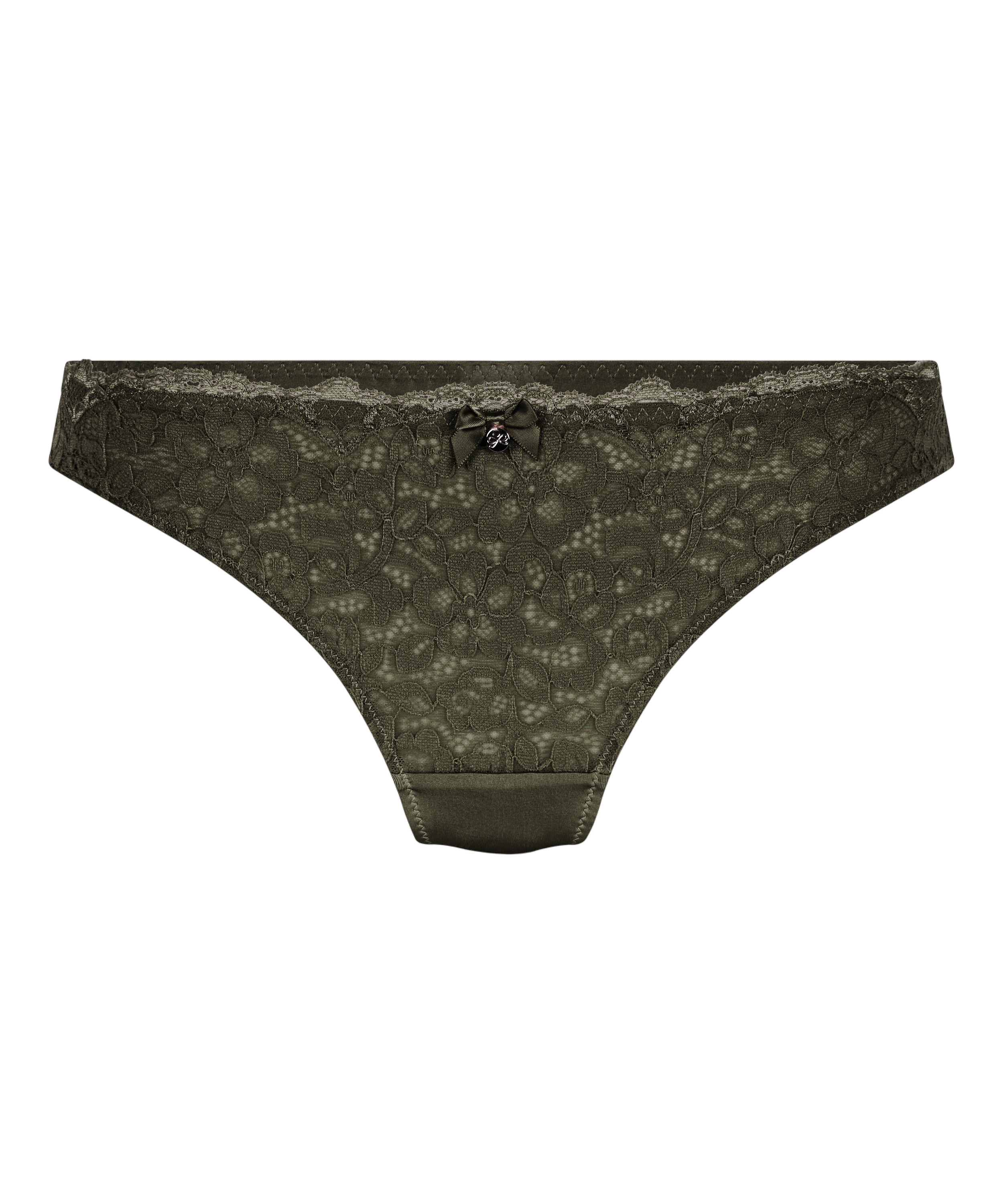 Denne g-streng vil klæde dig superflot! Den er helt udført med blonder i et blomstermotiv og en lille sløjfe foran. Kombiner med den matchende bh og fuldend dit look.