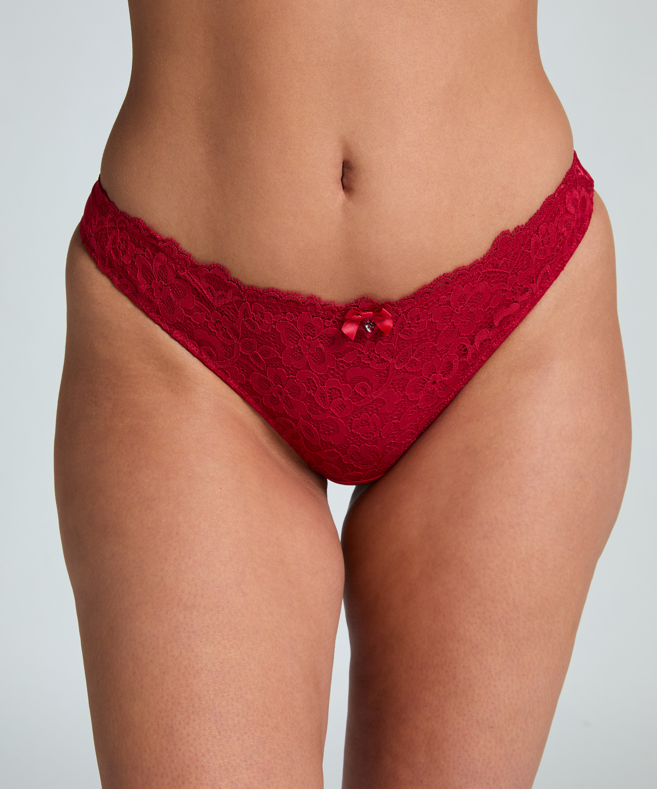 Denne g-streng vil klæde dig superflot! Den er helt udført med blonder i et blomstermotiv og en lille sløjfe foran. Kombiner med den matchende bh og fuldend dit look.