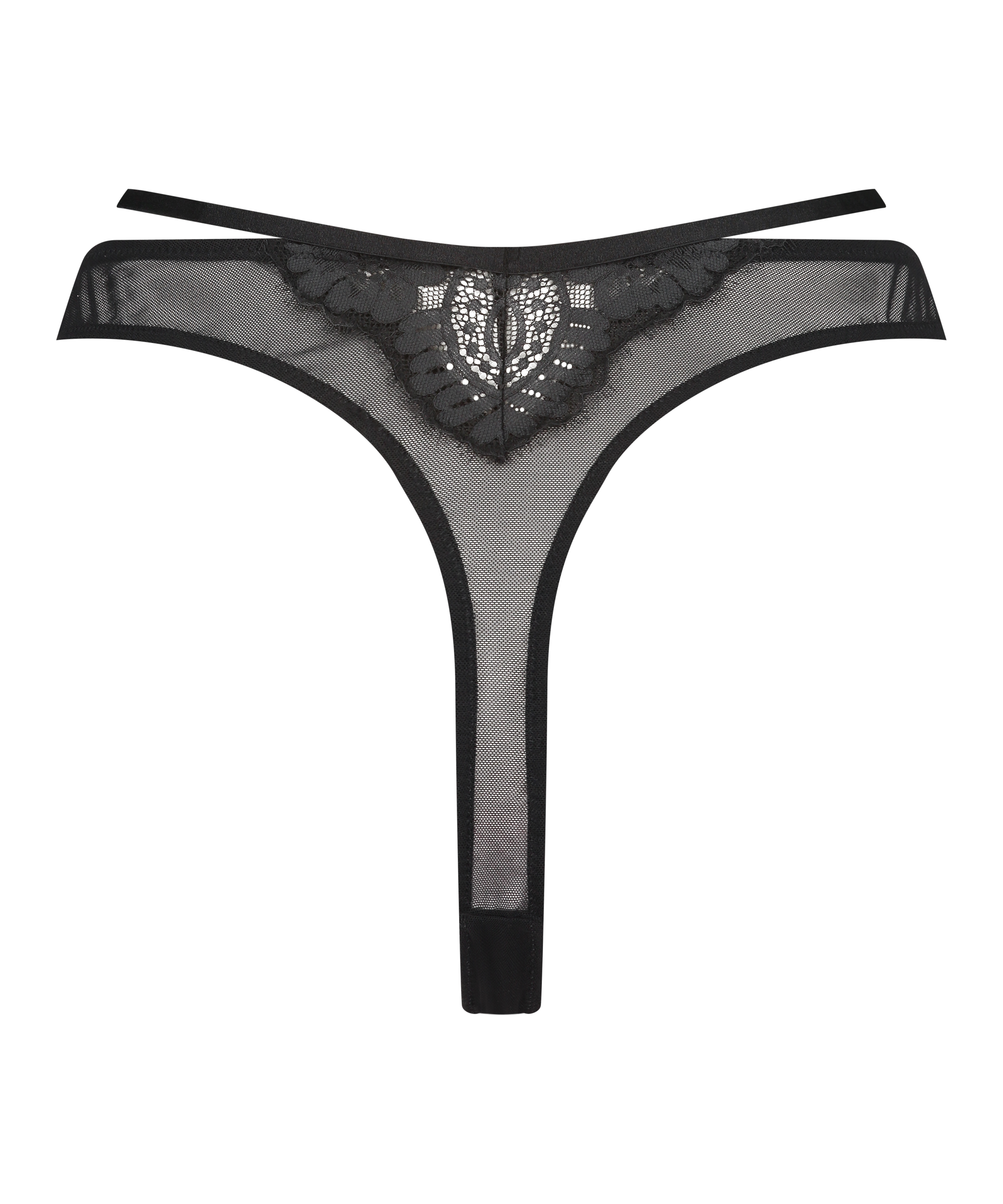 Se sexet ud i denne g-streng! Forsiden er helt dækket af blonder, og bagsiden er fremstillet i et behageligt mesh-materiale. Der er også sexede snore foran. De høje benudskæringer forlænger dine ben. Fuldend sættet med den matchende bh!