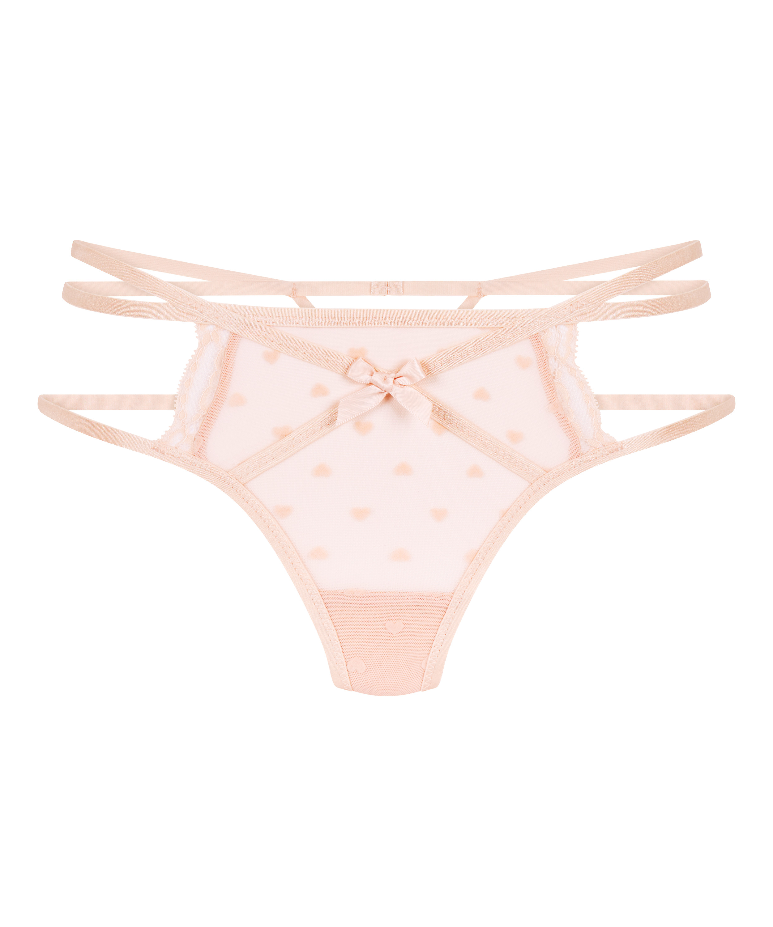 Føl dig sexet i denne smukke g-streng! Den har masser af blonder, en sød sløjfe foran og lækre stropdetaljer. Kombinér med matchende tilbehør for at få et sødt sæt!