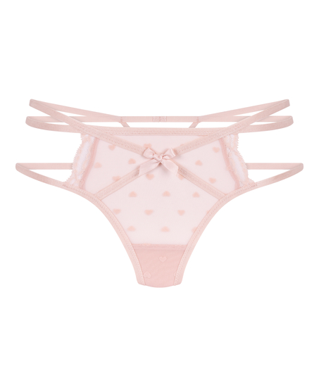 Føl dig sexet i denne smukke g-streng! Den har masser af blonder, en sød sløjfe foran og lækre stropdetaljer. Kombinér med matchende tilbehør for at få et sødt sæt!