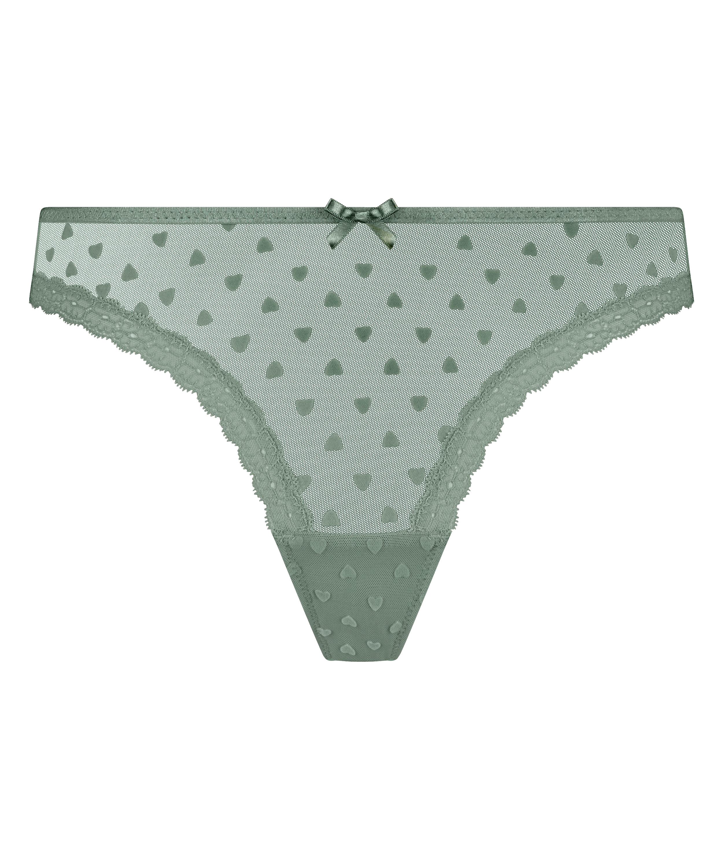 Føl dig veltilpas i denne pæne g-streng. G-strengen har en blondekant og detaljer i form af fløjlshjerter. Sæt den sammen med din yndlings bh som kronen på værket.