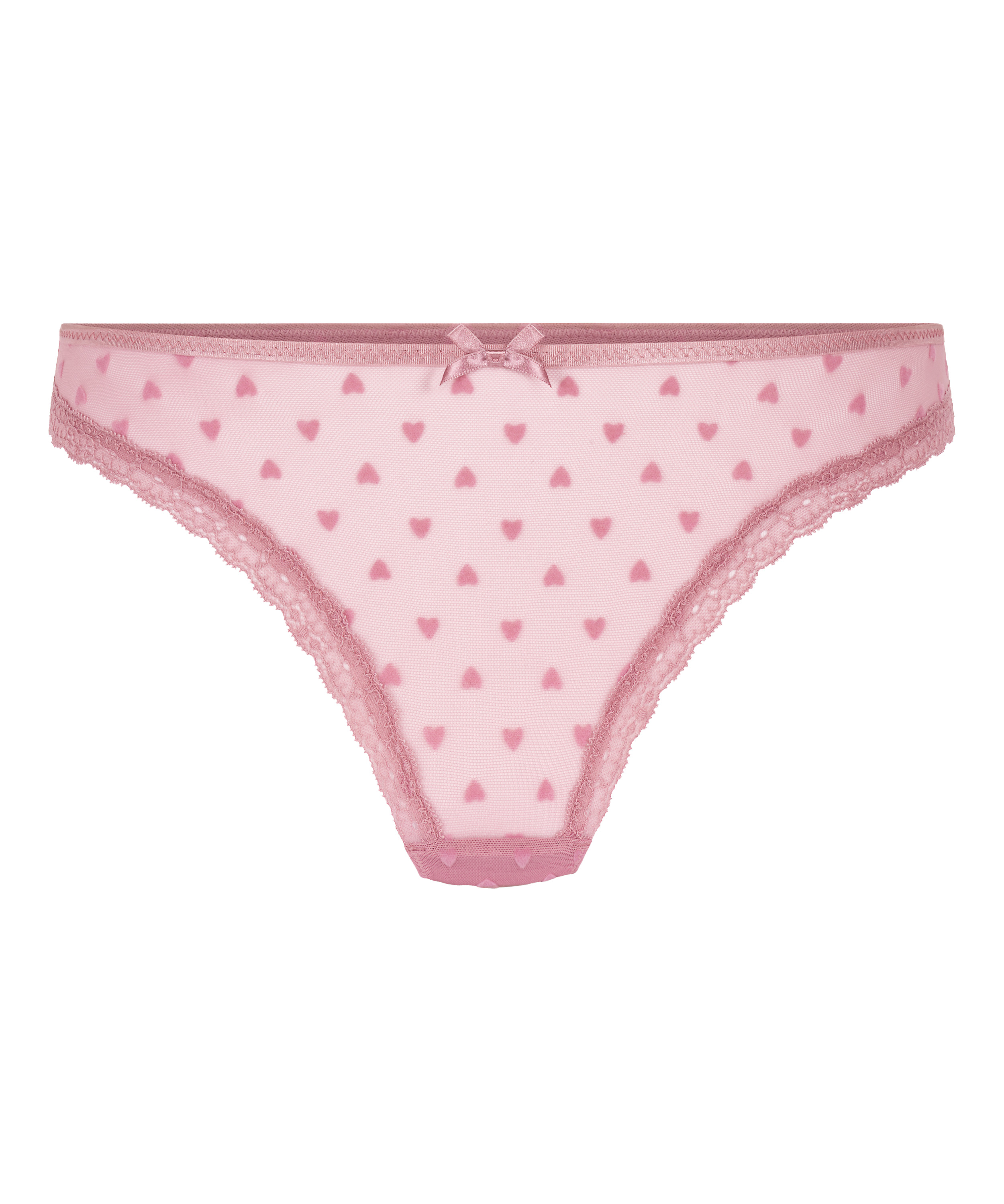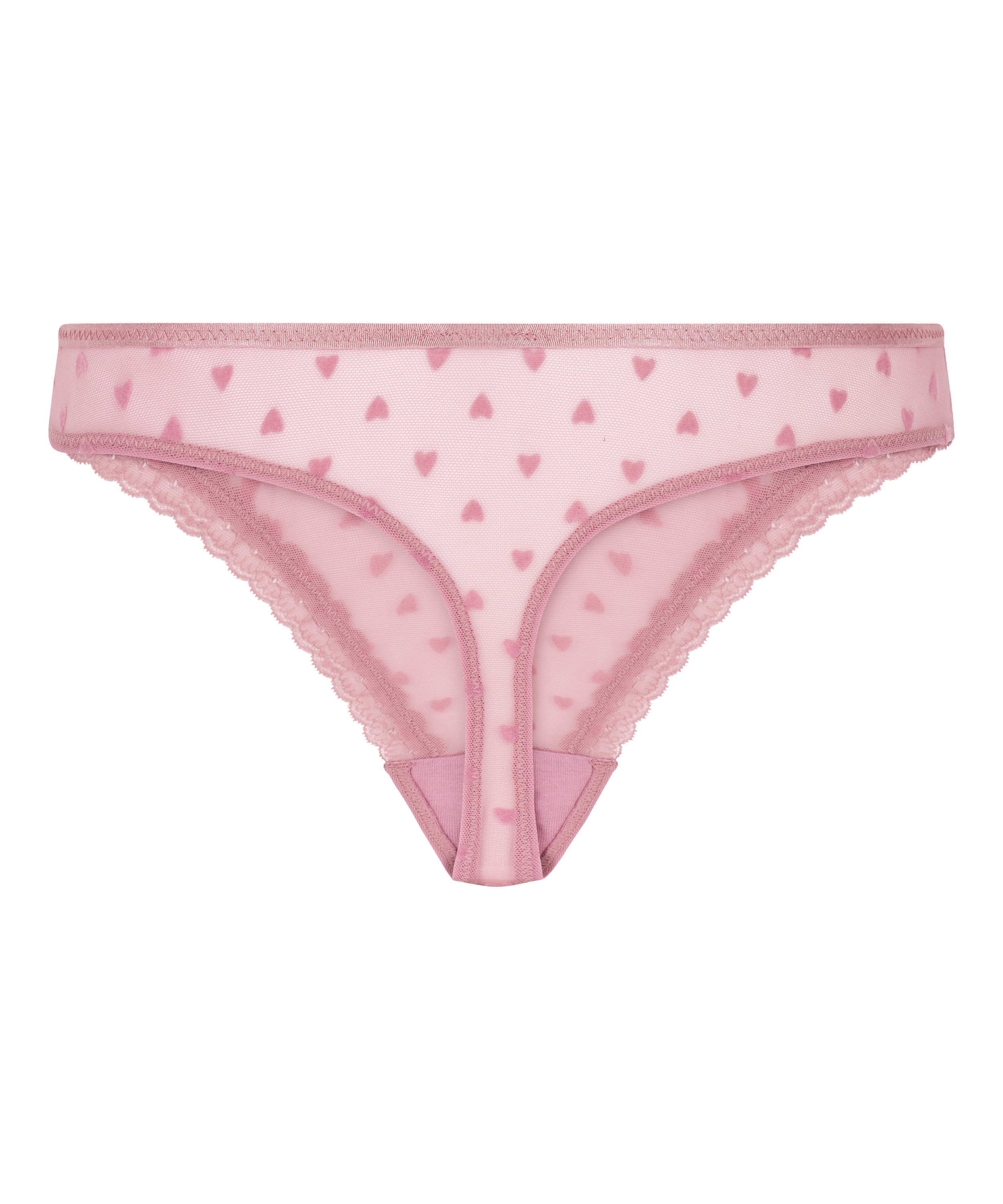 Føl dig veltilpas i denne pæne g-streng. G-strengen har en blondekant og detaljer i form af fløjlshjerter. Sæt den sammen med din yndlings bh som kronen på værket.