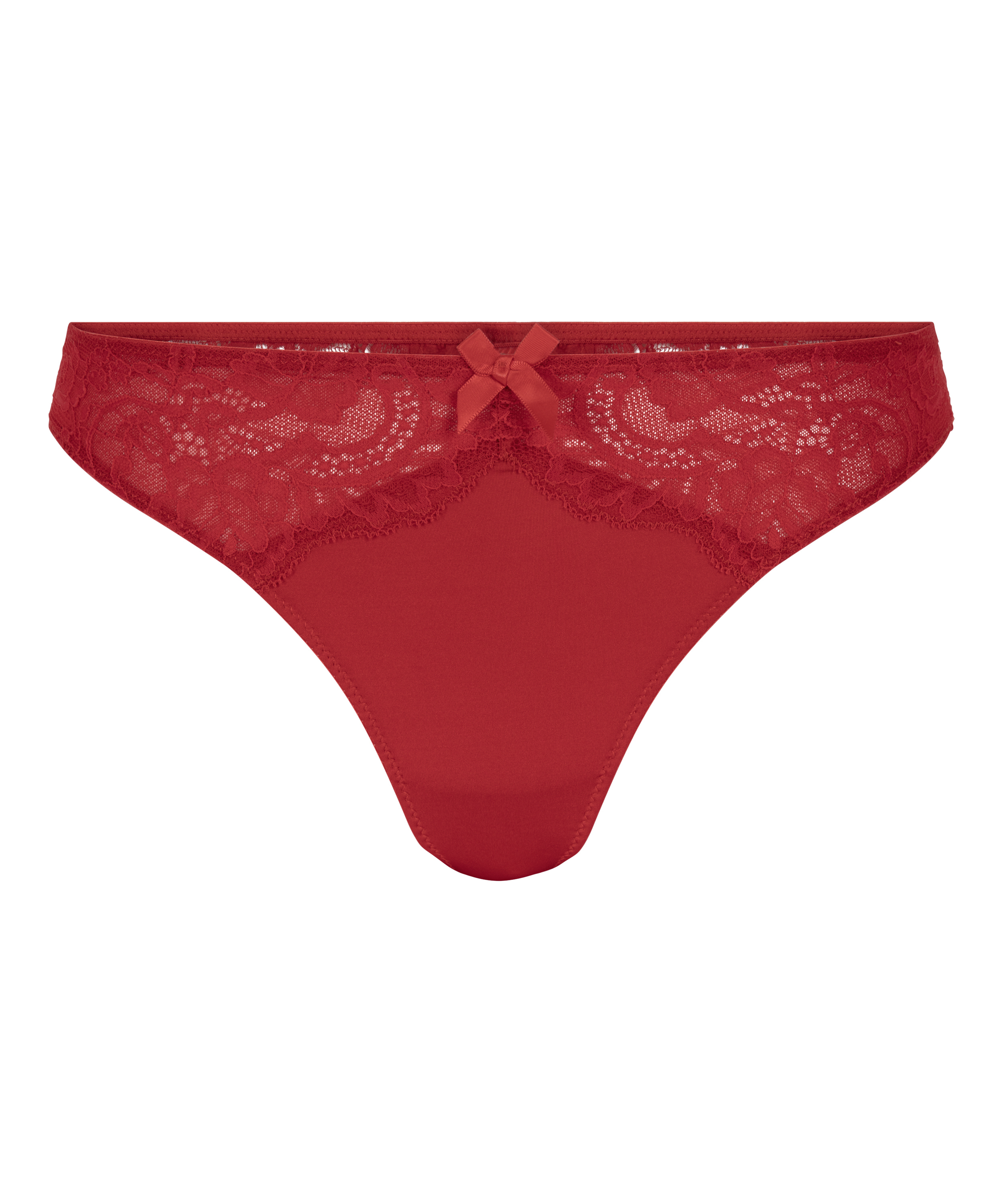 Denne g-streng er et absolut must-have! Trussen har detaljer af blonder og en flot sløjfe foran. Fås i forskellige farver. Match med en passende bh for at få et smukt sæt!