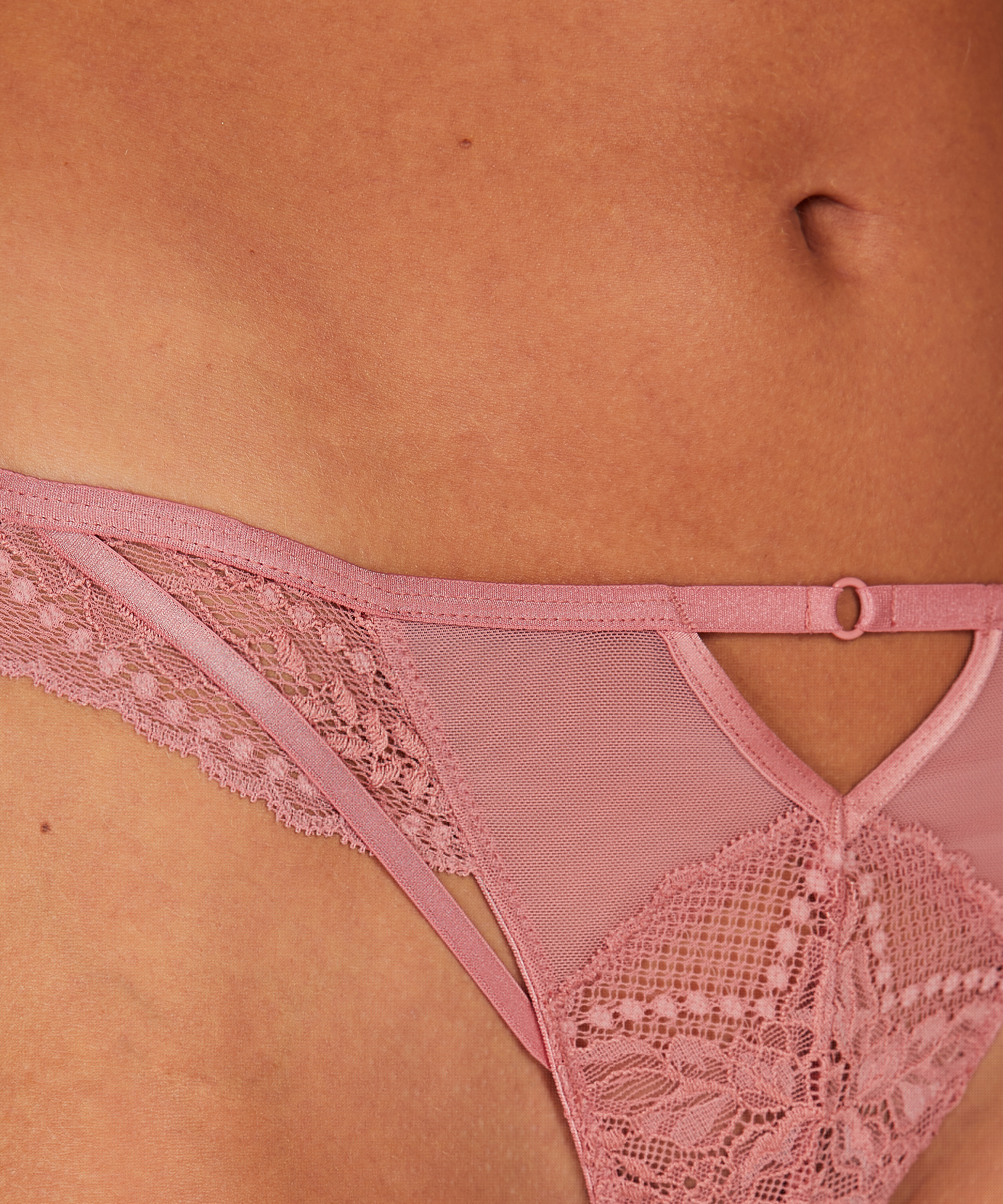 Denne g-streng er et must til din samling! Den har blonder, mesh og sexede udskårne detaljer. Kombiner med din yndlings-bh i samme farve!