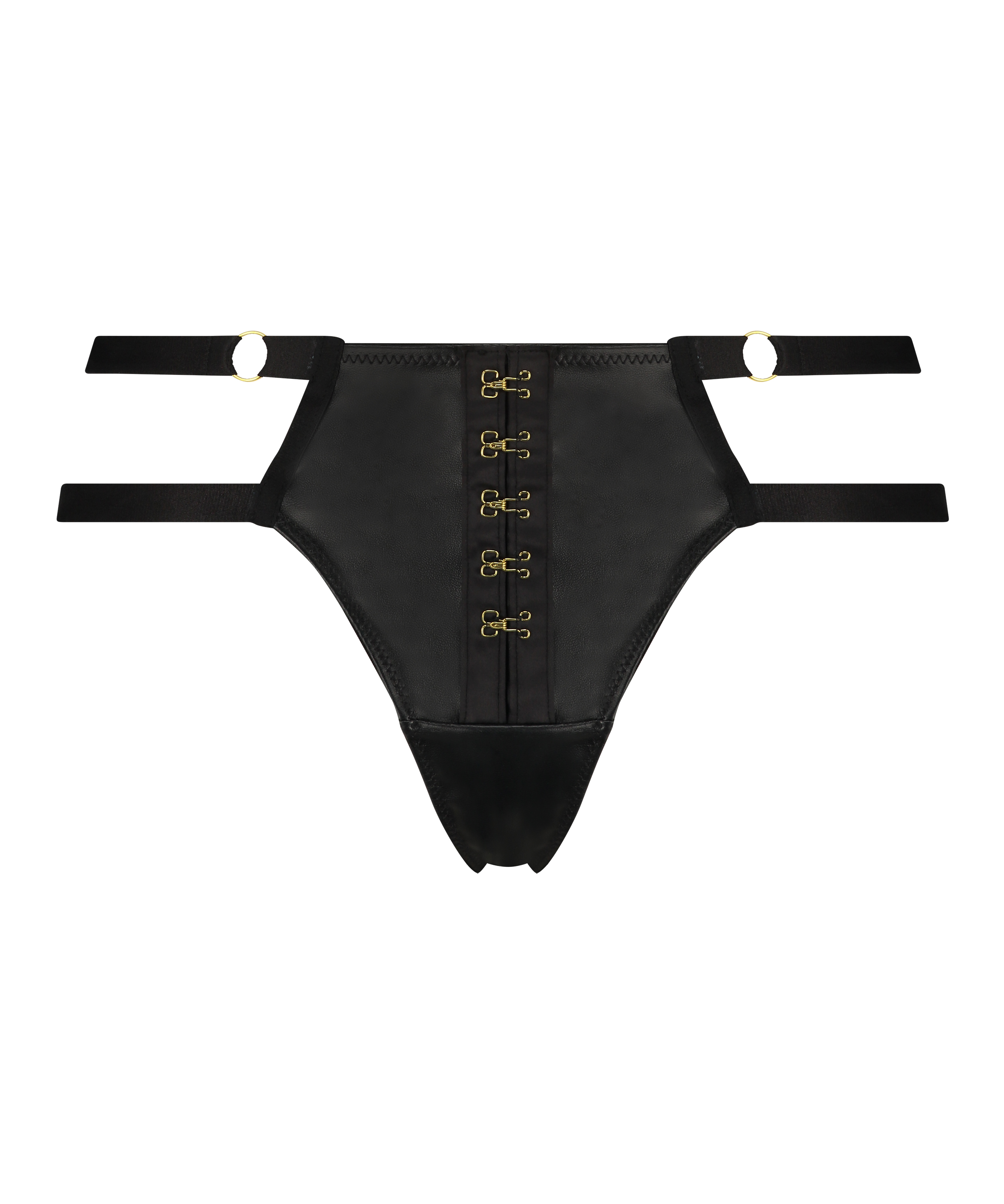 Føl dig sexet i denne g-streng! Strengen har mange stropper, falsk læder og gulddetaljer til at gøre den ekstra speciel. Kombinér med den matchende bh for et smukt sæt! Del af Private-kollektionen.