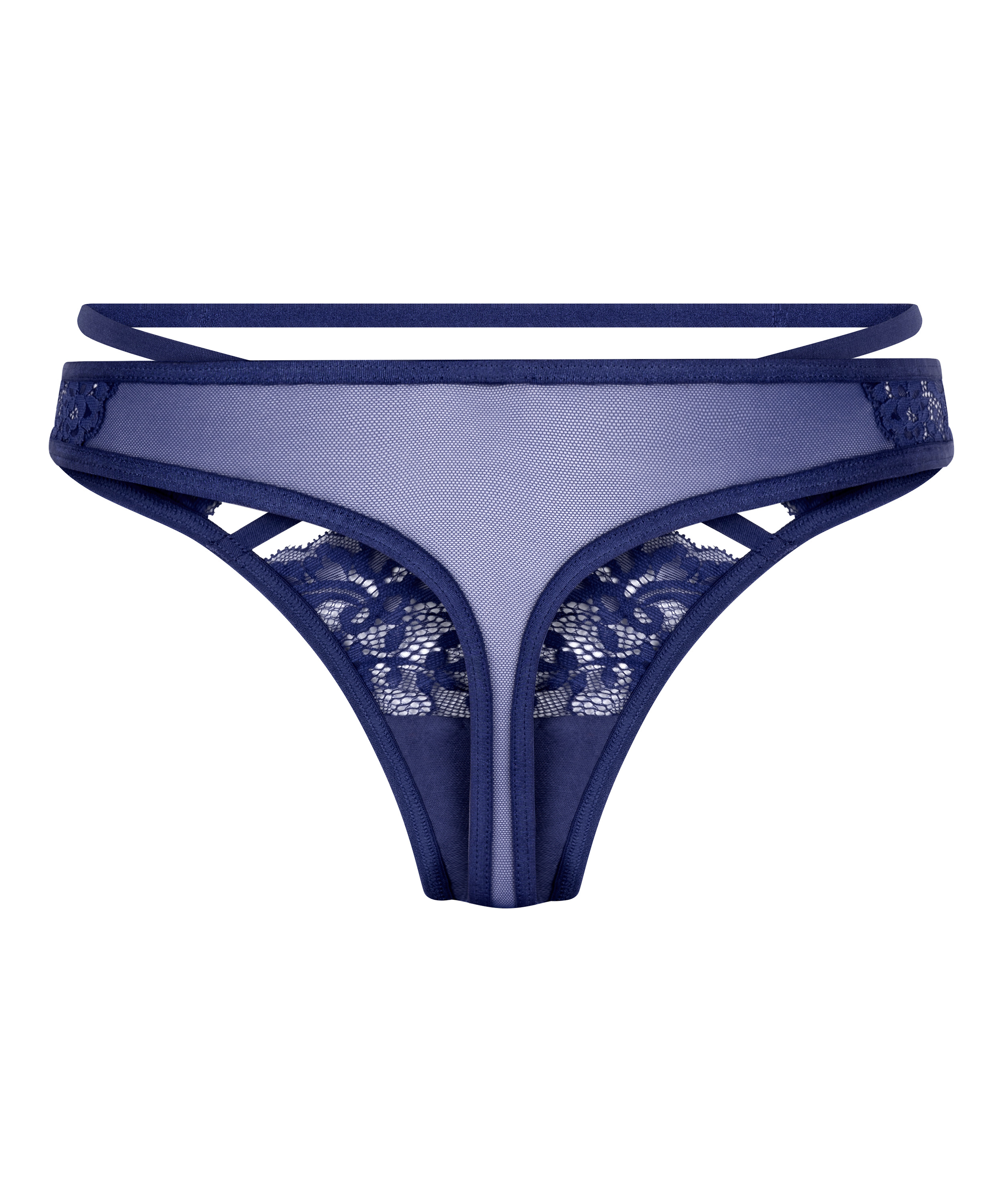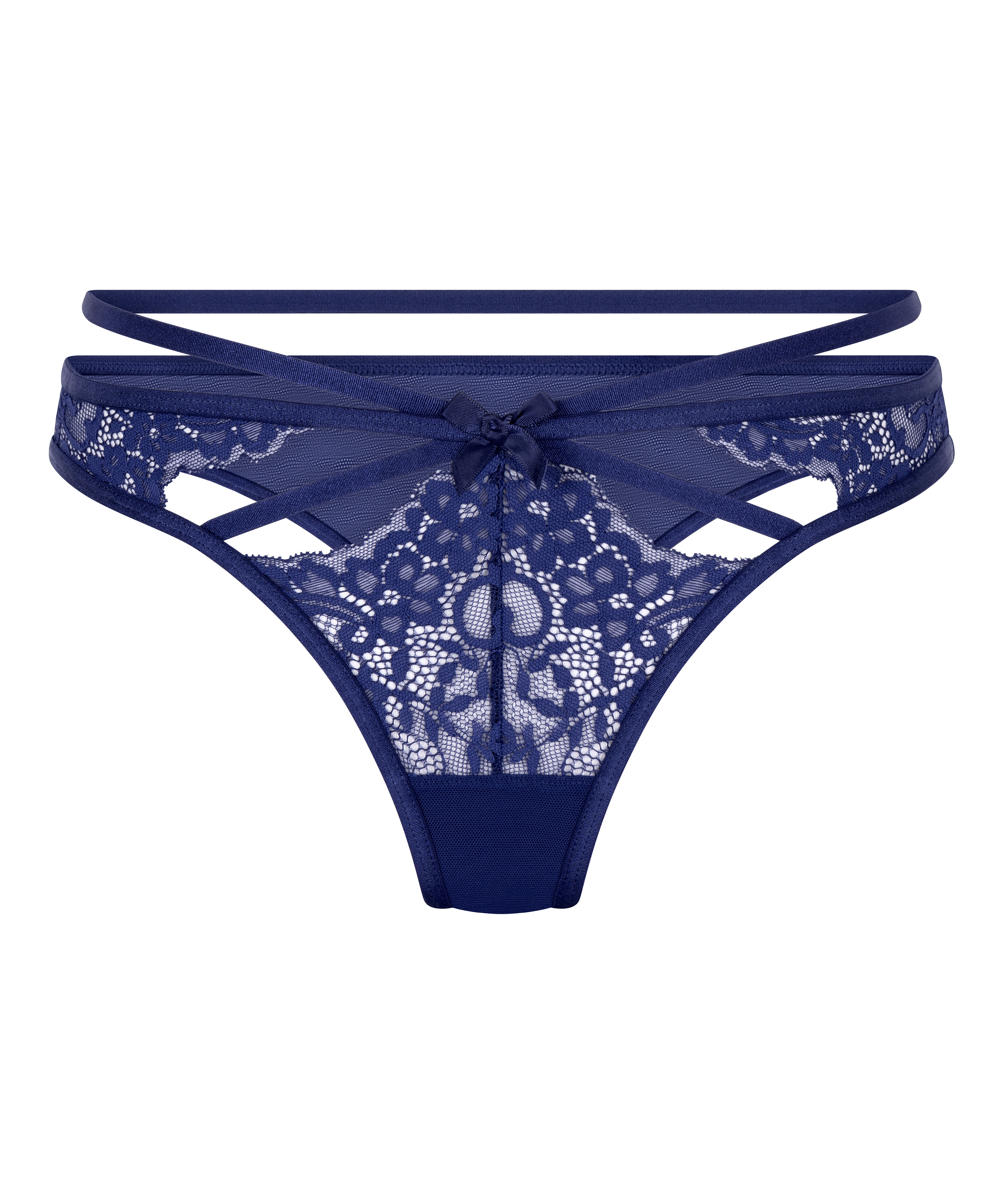 Føl dig uimodståelig i denne g-streng. G-strengen har mange blonder og udskårne detaljer. Derudover indeholder trussen også stropdetaljer. Match med passende bh.