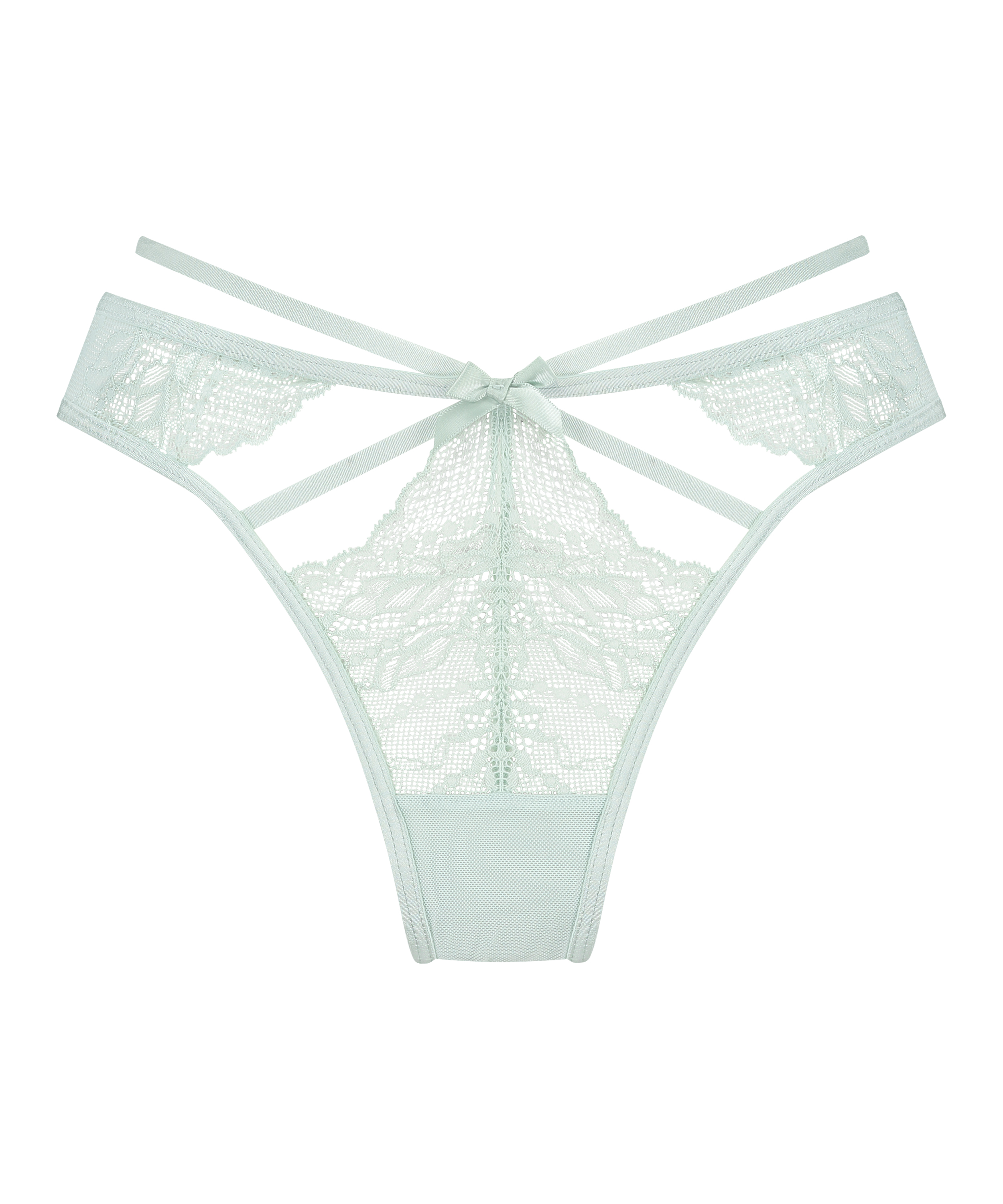 Føl dig uimodståelig i denne g-streng. G-strengen har mange blonder og udskårne detaljer. Derudover indeholder trussen også stropdetaljer. Match med passende bh.