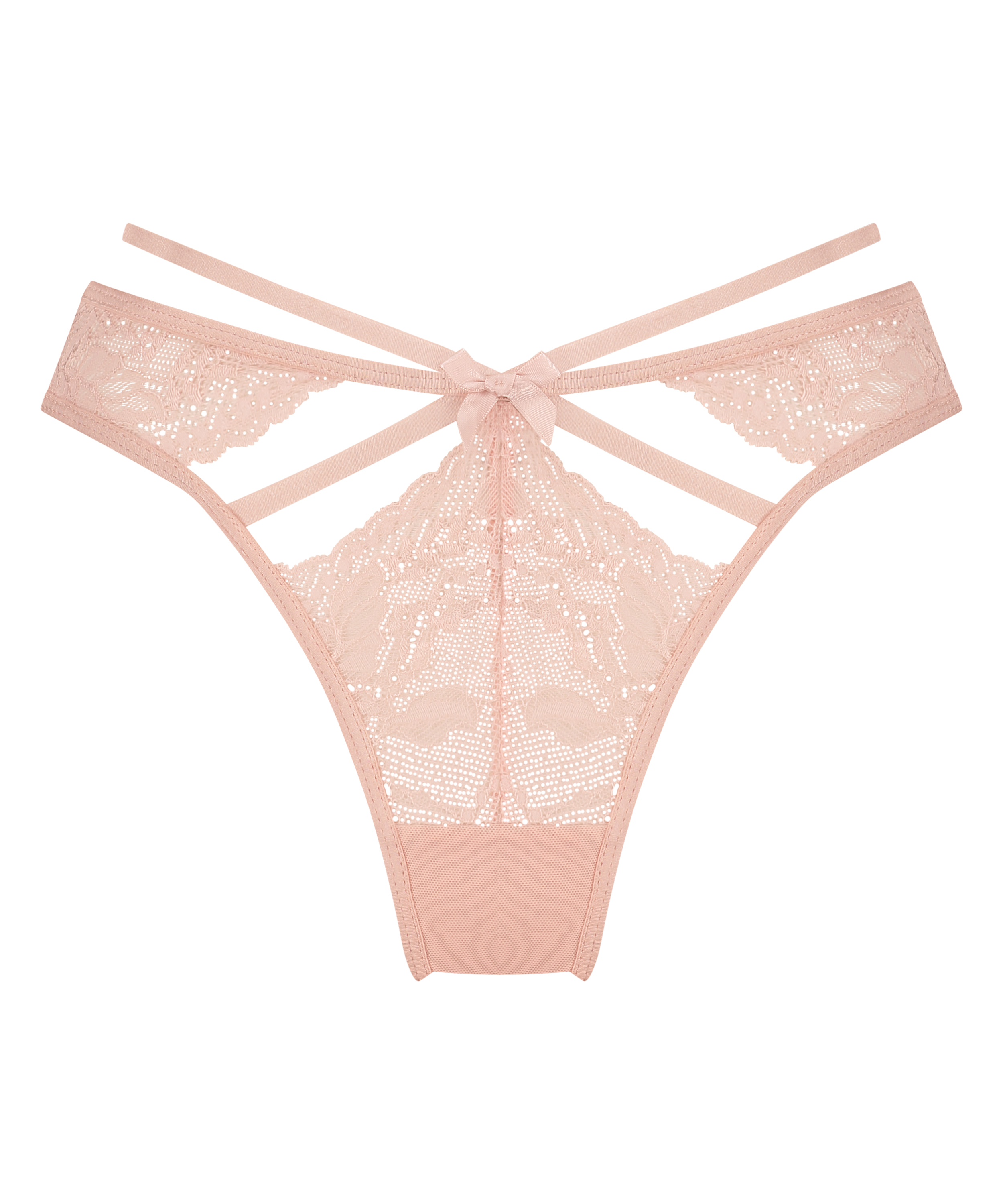 Føl dig uimodståelig i denne g-streng. G-strengen har mange blonder og udskårne detaljer. Derudover indeholder trussen også stropdetaljer. Match med passende bh.