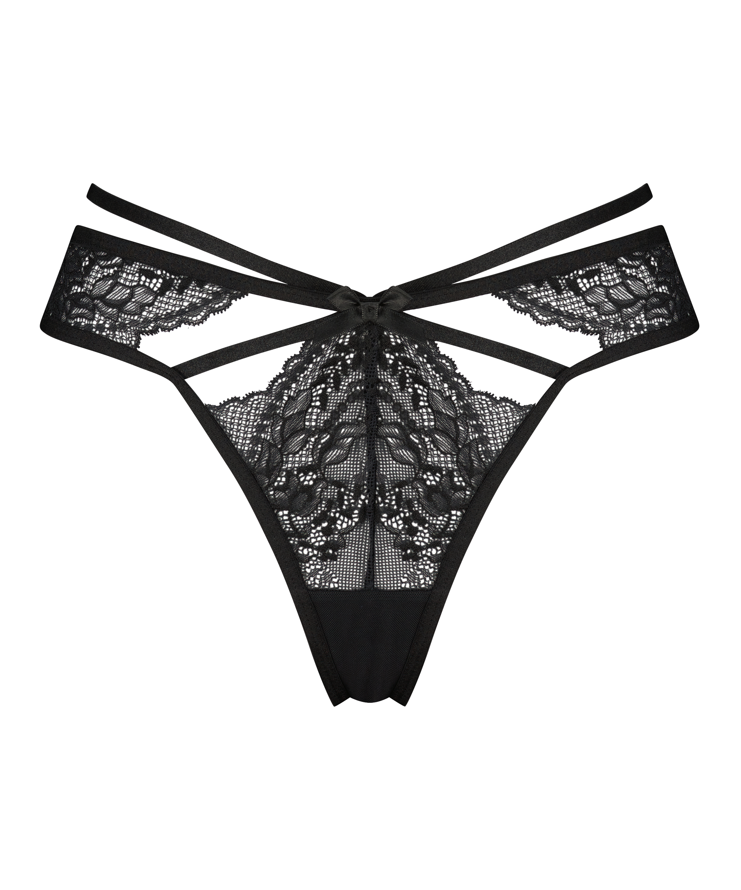Føl dig uimodståelig i denne g-streng. G-strengen har mange blonder og udskårne detaljer. Derudover indeholder trussen også stropdetaljer. Match med passende bh.