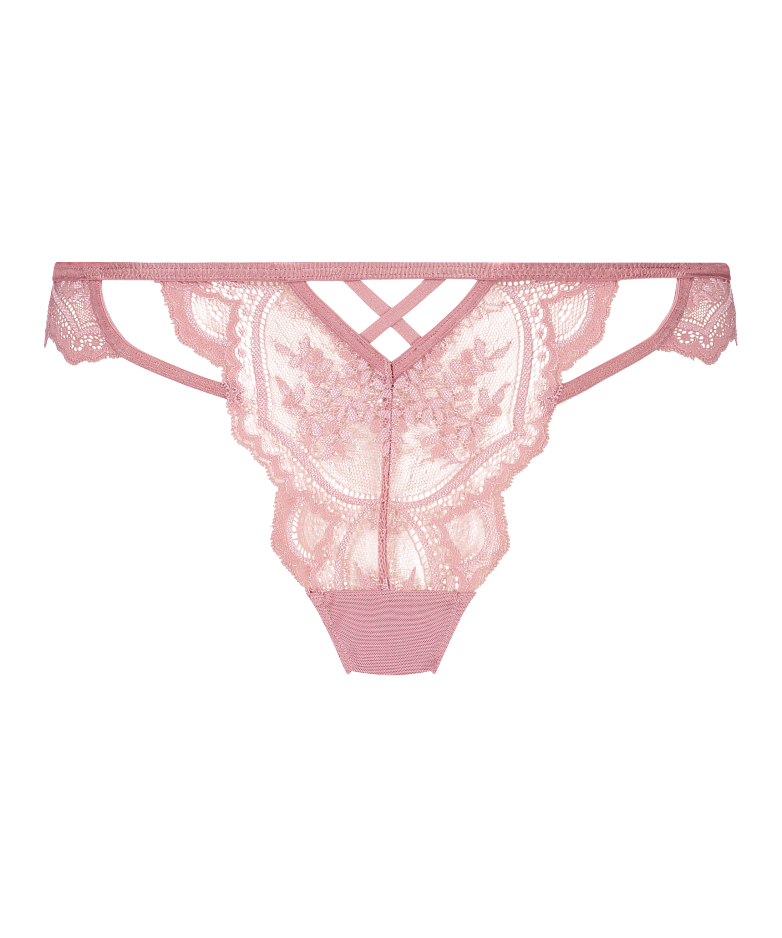 Denne g-streng ser rigtig godt ud på dig! Den har mange blonder og sexede udskårne detaljer. Kombineret med en passende bralette får du det komplette look.