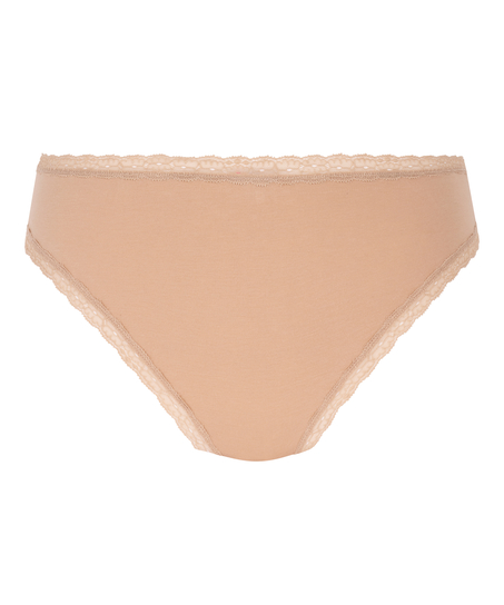 Bomuldskvalitet og pyntet med en sød blondekant. Let at kombinere med enhver bh i samme farve. Det superkomfortable must, føles ny og bedre på hånden og er ekstremt blød og strækbar. Med smukke blomsterblonder, der gør stilen ekstra moderne.