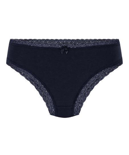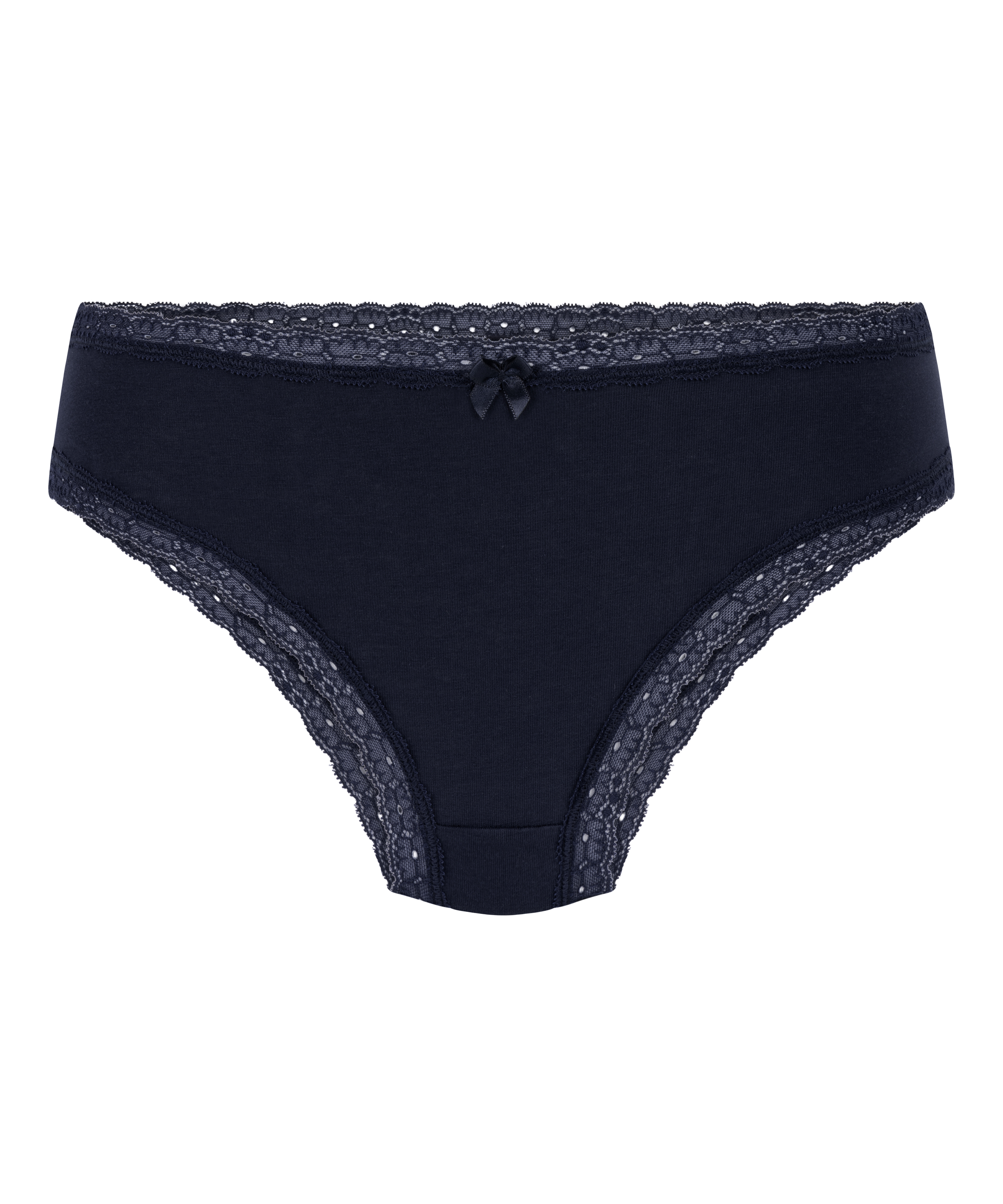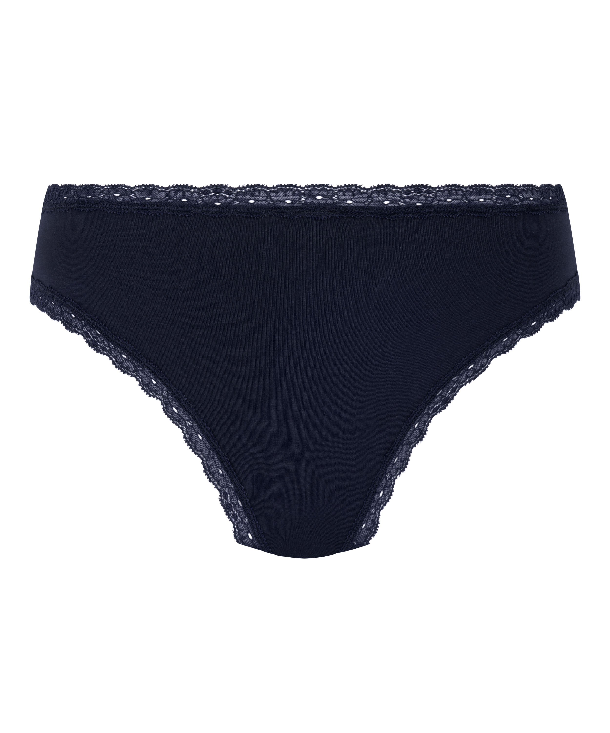 Bomuldskvalitet og pyntet med en sød blondekant. Let at kombinere med enhver bh i samme farve. Det superkomfortable must, føles ny og bedre på hånden og er ekstremt blød og strækbar. Med smukke blomsterblonder, der gør stilen ekstra moderne.
