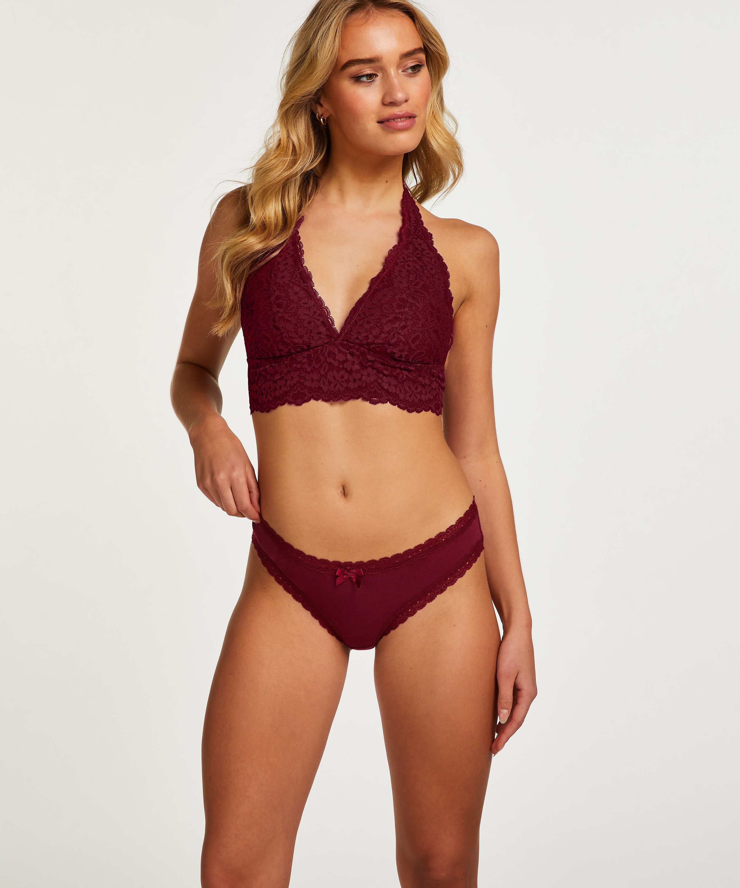Bomuldskvalitet og pyntet med en sød blondekant. Let at kombinere med enhver bh i samme farve. Det superkomfortable must, føles ny og bedre på hånden og er ekstremt blød og strækbar. Med smukke blomsterblonder, der gør stilen ekstra moderne.