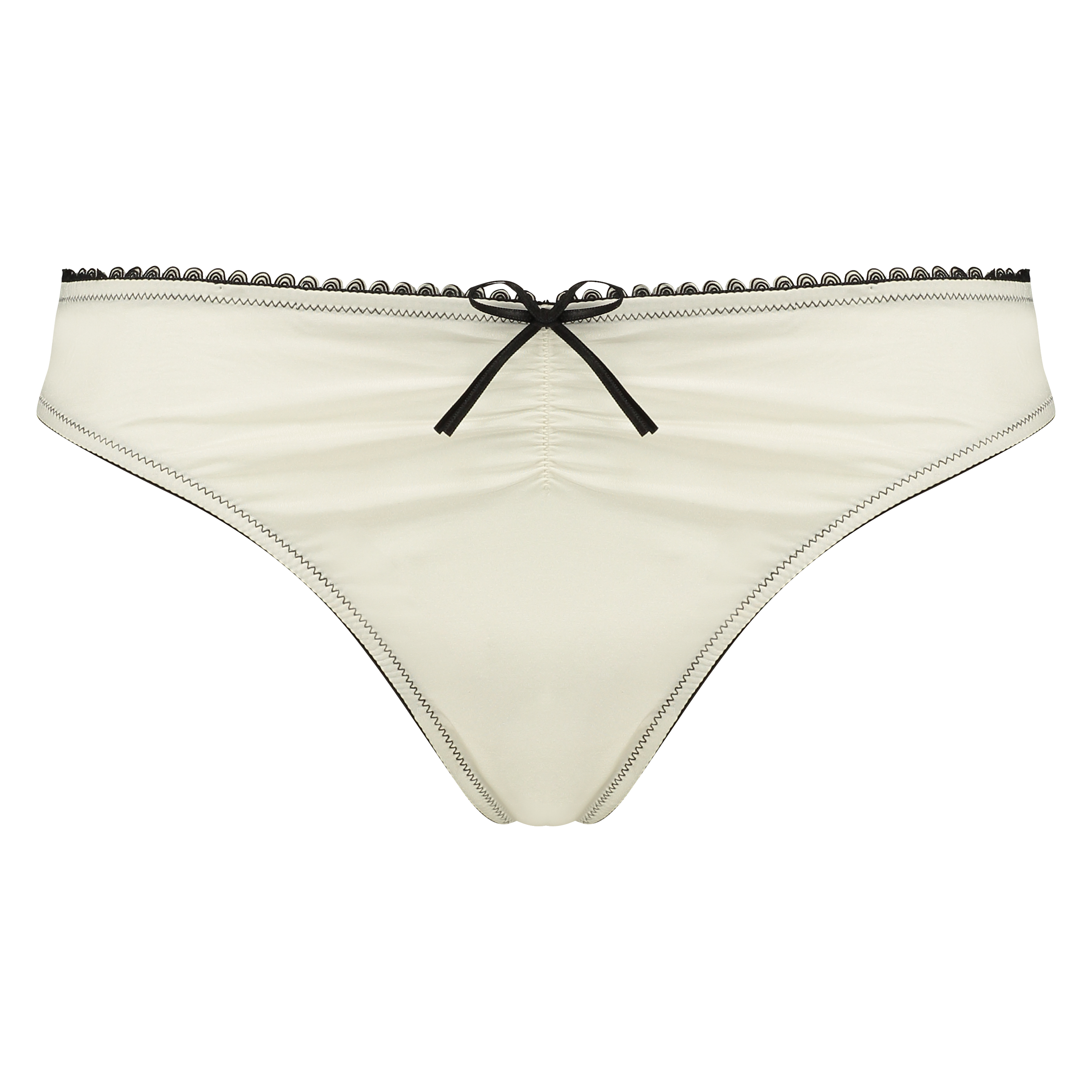 Gå efter det stilfulde look med denne g-streng! I skinnende stof og med flot rynkeeffekt på forsiden. En sød sløjfe foran sætter prikken over i'et.