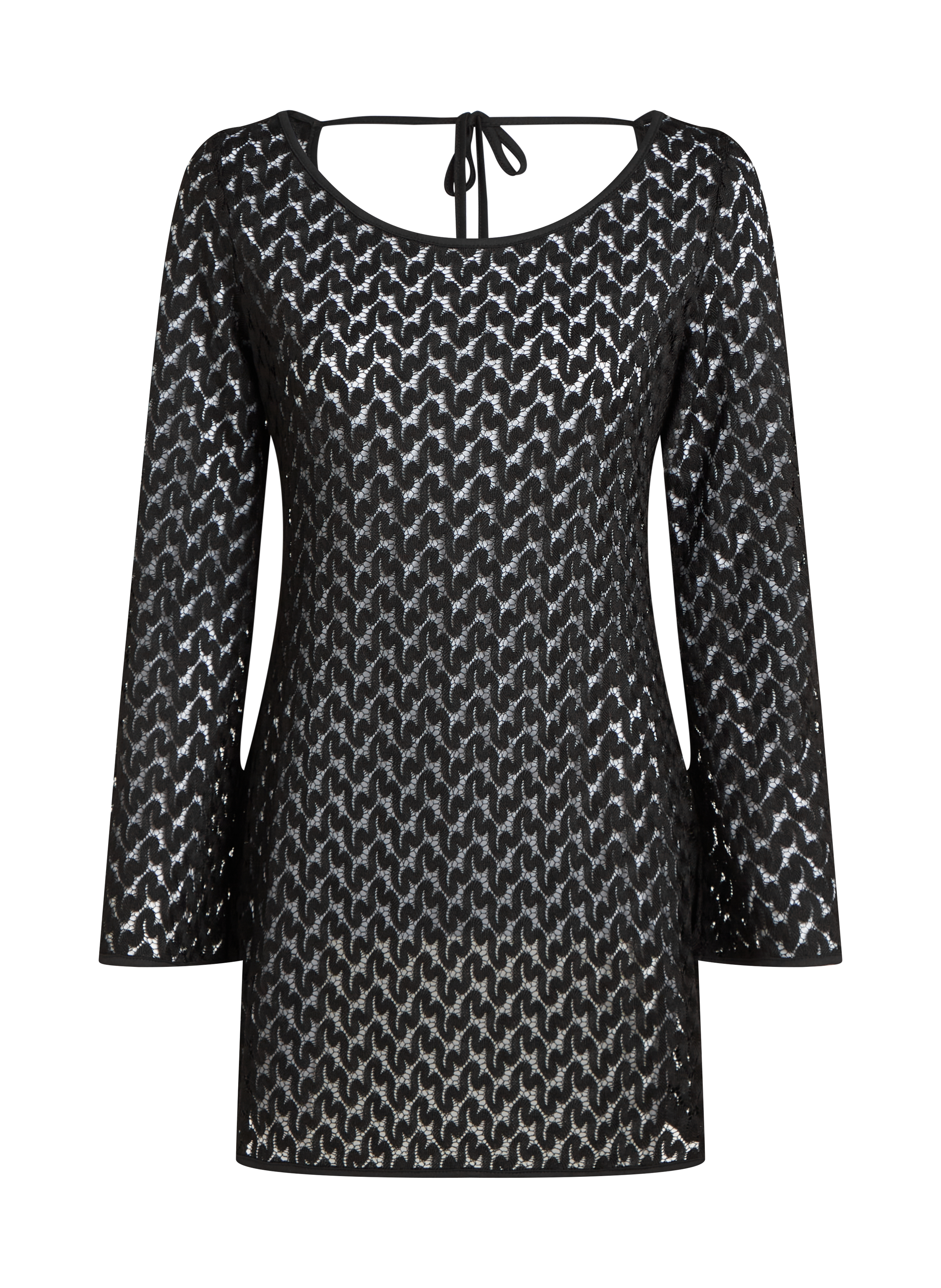 Nyd det afslappede liv ved vandet i denne strandkjole. Den lette og luftige kjole har hæklede detaljer, som gør den perfekt til at tage over dit yndlingsbadetøj. Designet med den åbne ryg og bindelukning tilføjer et strejf af charme – et must-have til solrige feriestunder.