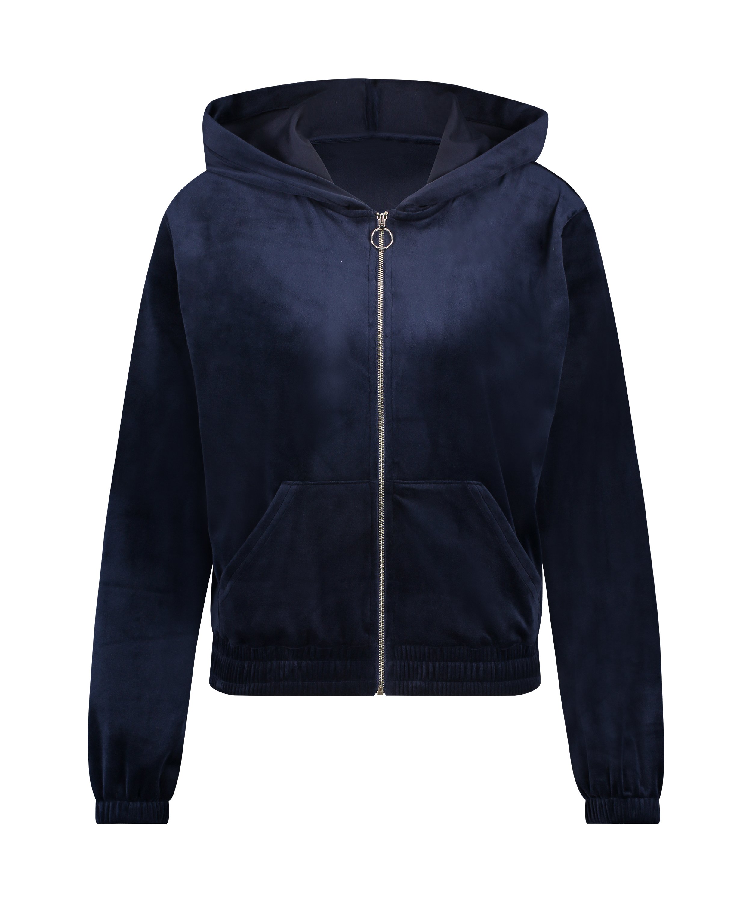 Nyd denne jakke med hætte! Denne jakke består af et blødt stof og har lynlås foran. Der er lommer i begge sider. Kombiner med matchende bukser og få en fantastisk behagelig følelse.