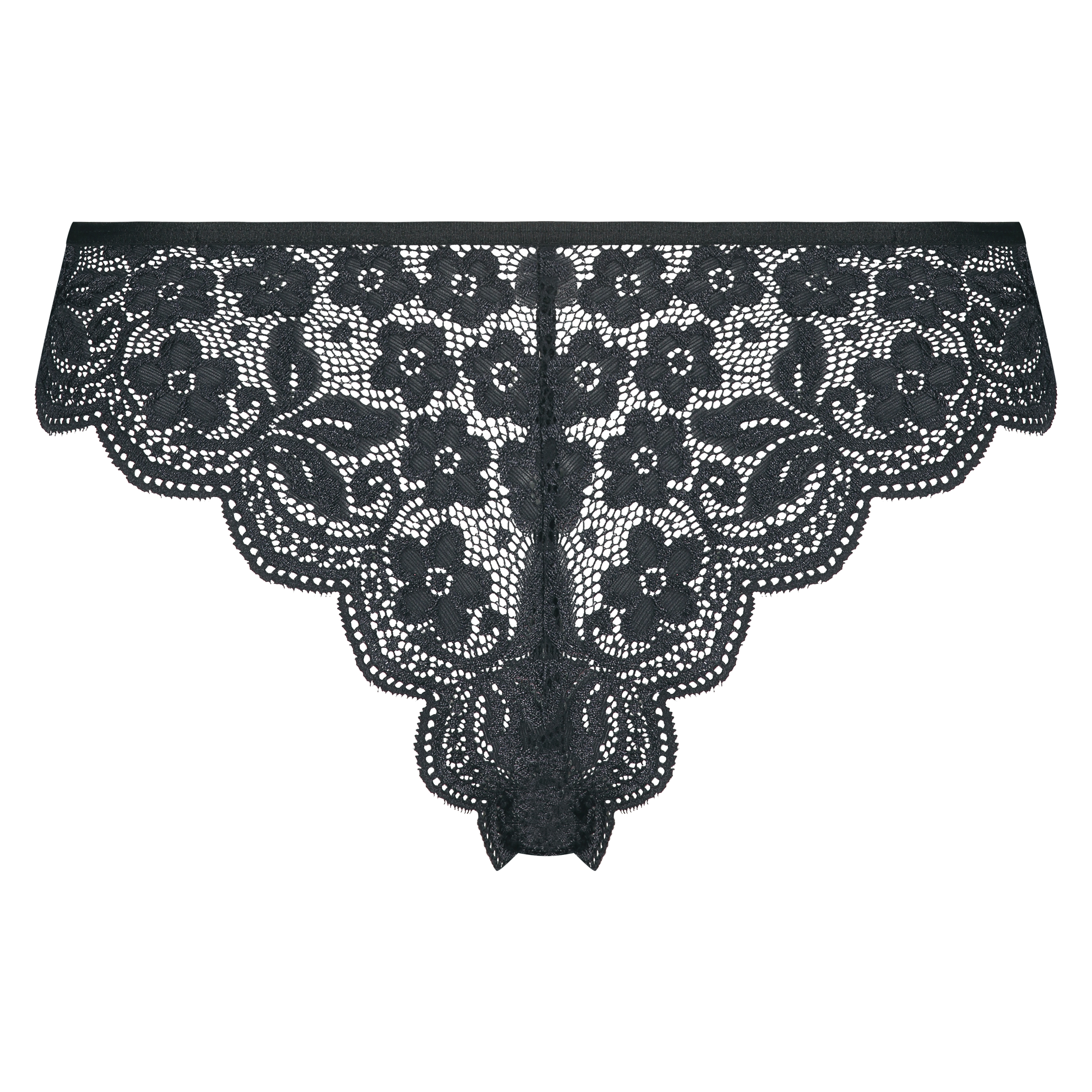 Fuldend dit sæt med disse flotte høje brasilianske trusser. Der er ingen tvivl om, at det kommer til at se fantastisk godt ud! Blonden har et smukt indvævet blomstermønster.